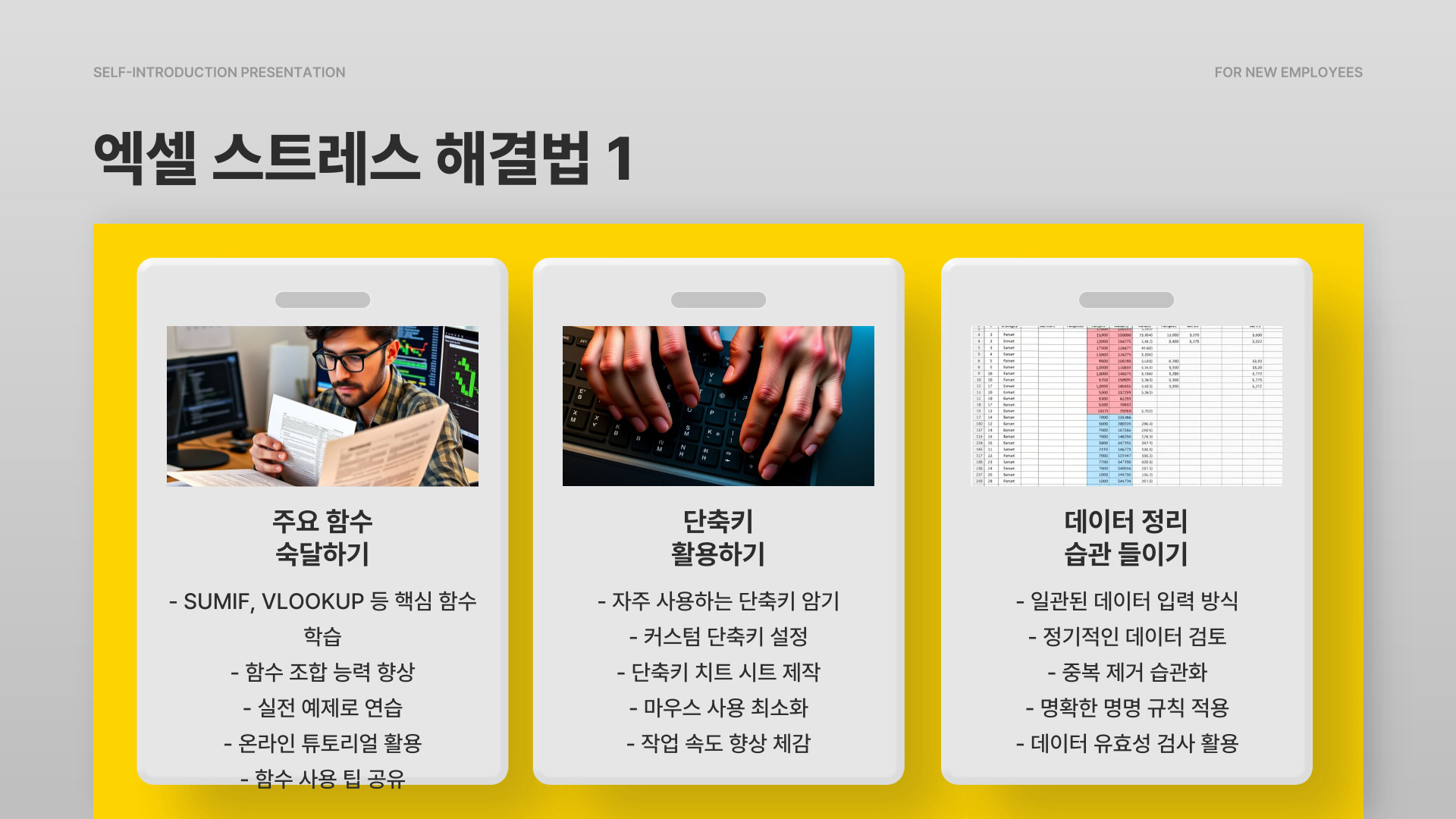엑셀에서 SUMIF 함수를 사용할 때 느끼는 스트레스를 줄이기 위해 몇 가지 방법을 제안합니다. 첫째, 함수 사용 시 예제 파일이나 튜토리얼을 참고하는 것이 좋습니다. 이러한 자료는 함수에 대한 이해를 더욱 높여줄 수 있으며 실수를 줄이는 데 도움을 줍니다. 예를 들어, 여러 실습을 통해 스스로 데이터를 합산하는 연습을 해본다면, 자신감이 생기고 실수할 확률이 줄어들 것입니다.