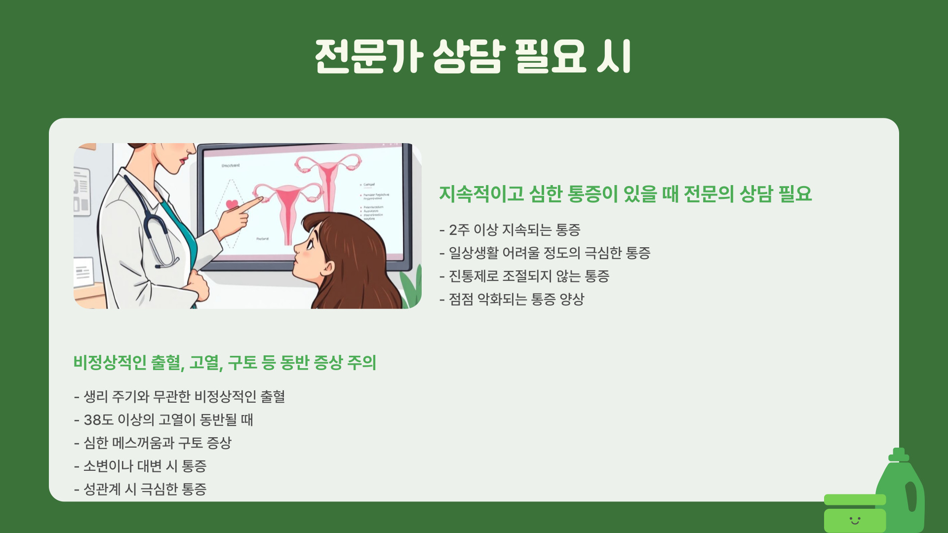 - 지속적인 통증이 있을 경우 전문의와 상담해야 합니다.