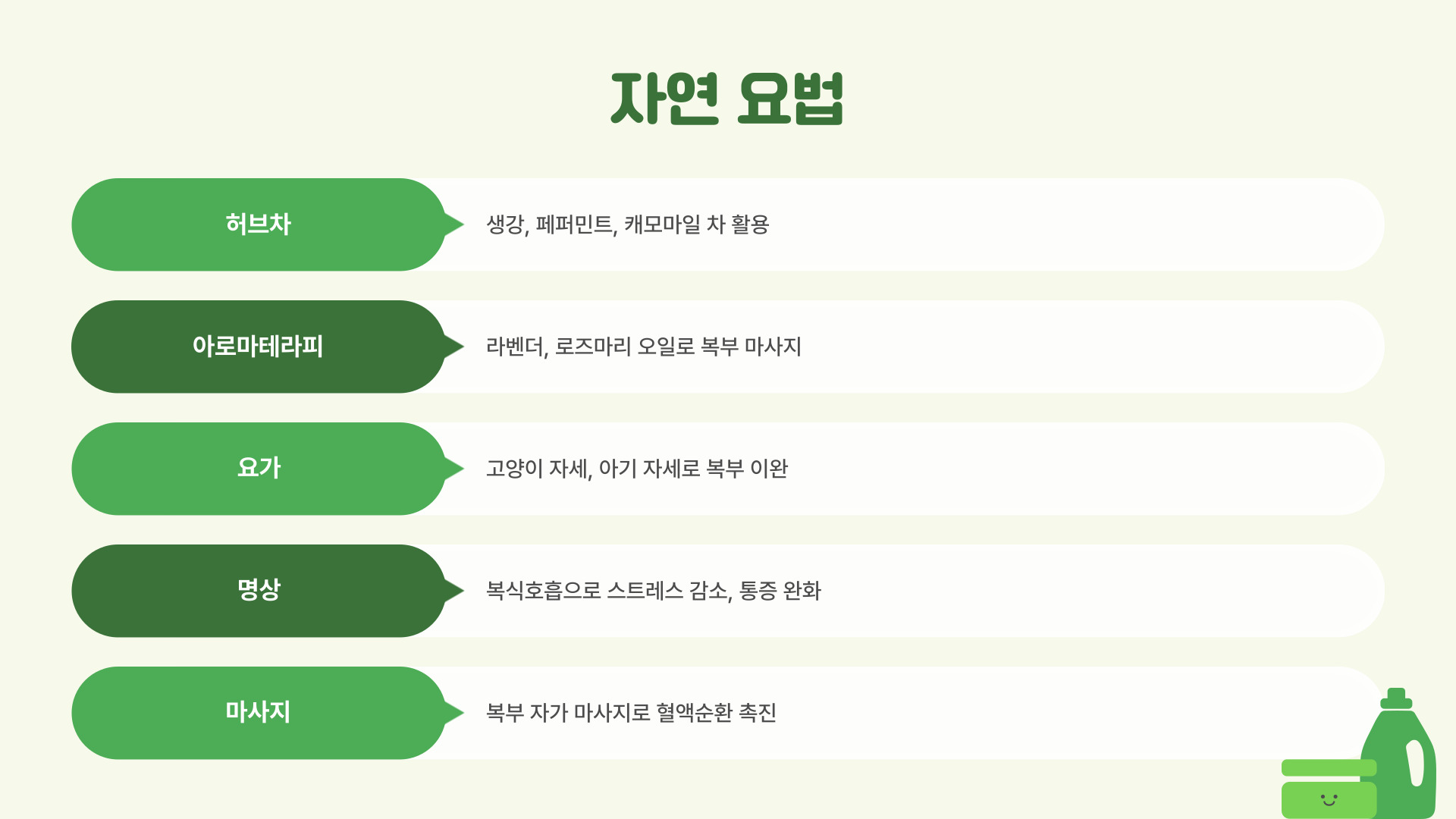 왼쪽 아랫배 통증을 완화하기 위한 몇 가지 자연적인 방법을 소개합니다. 이들 방법은 전문의와 상담한 후에 진행하는 것이 바람직합니다. 통증을 완화하기 위해서는 첫 번째로 온찜질이 효과적입니다. 온찜질은 혈액 순환을 개선하고, 근육 긴장을 완화시켜 주기 때문에 통증을 크게 덜어줄 수 있습니다.