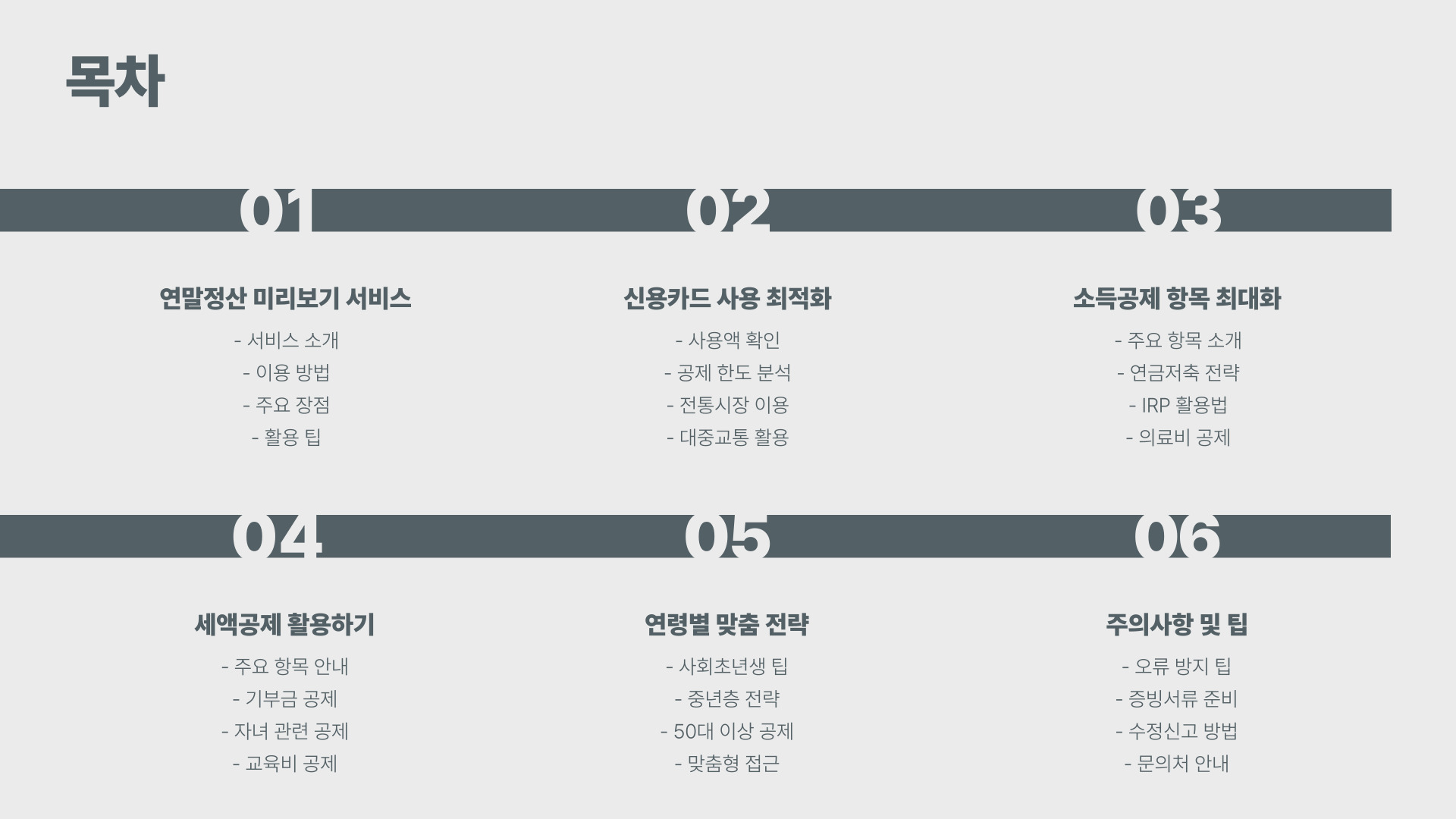 이 체크리스트를 바탕으로 모든 공제 항목을 확인하고, 누락된 항목이 없는지 점검하세요. 놓치는 항목이 없도록 주의해야 합니다!