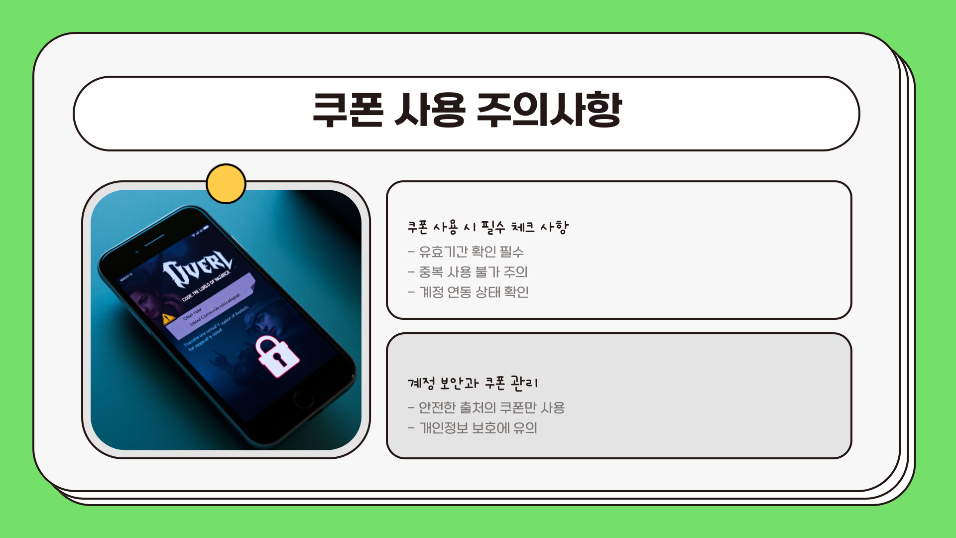 - 쿠폰 코드는 안전하게 관리하자.