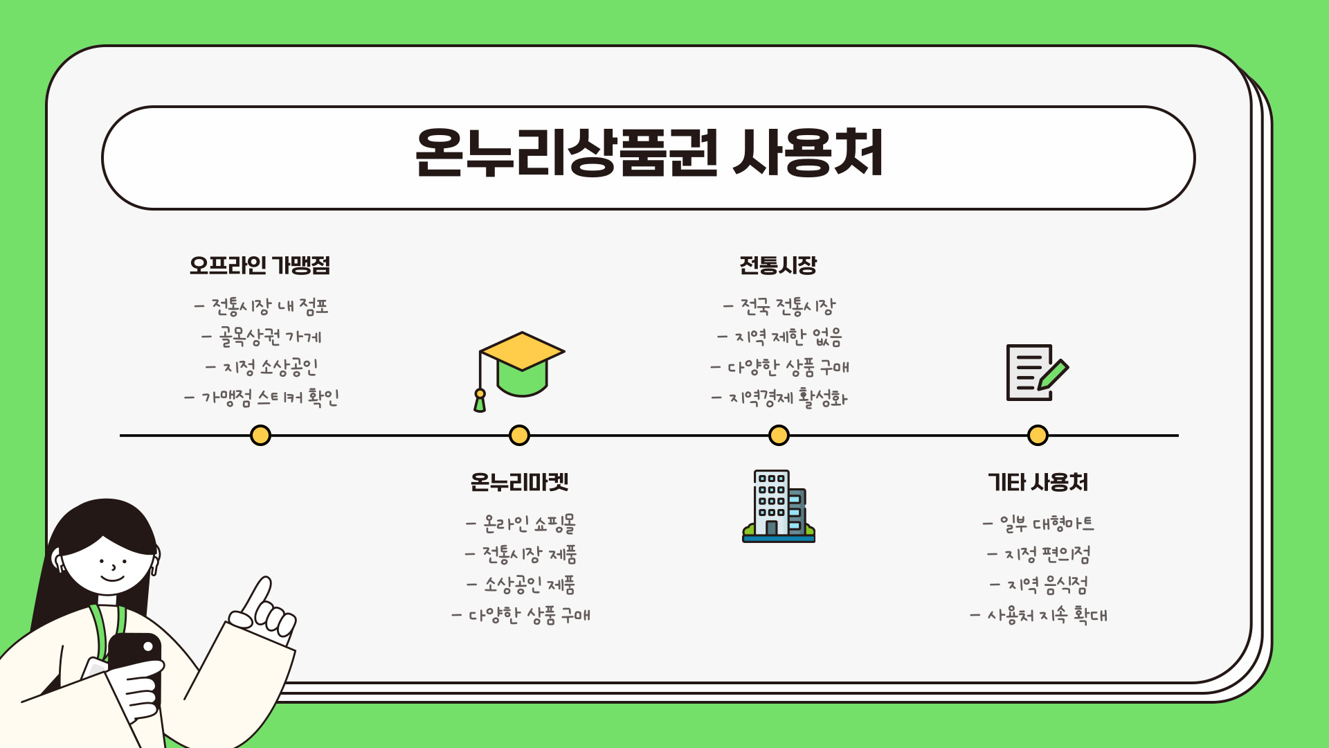 - 온누리상품권은 은행, 우체국, 온라인 쇼핑몰 등에서 구매 가능