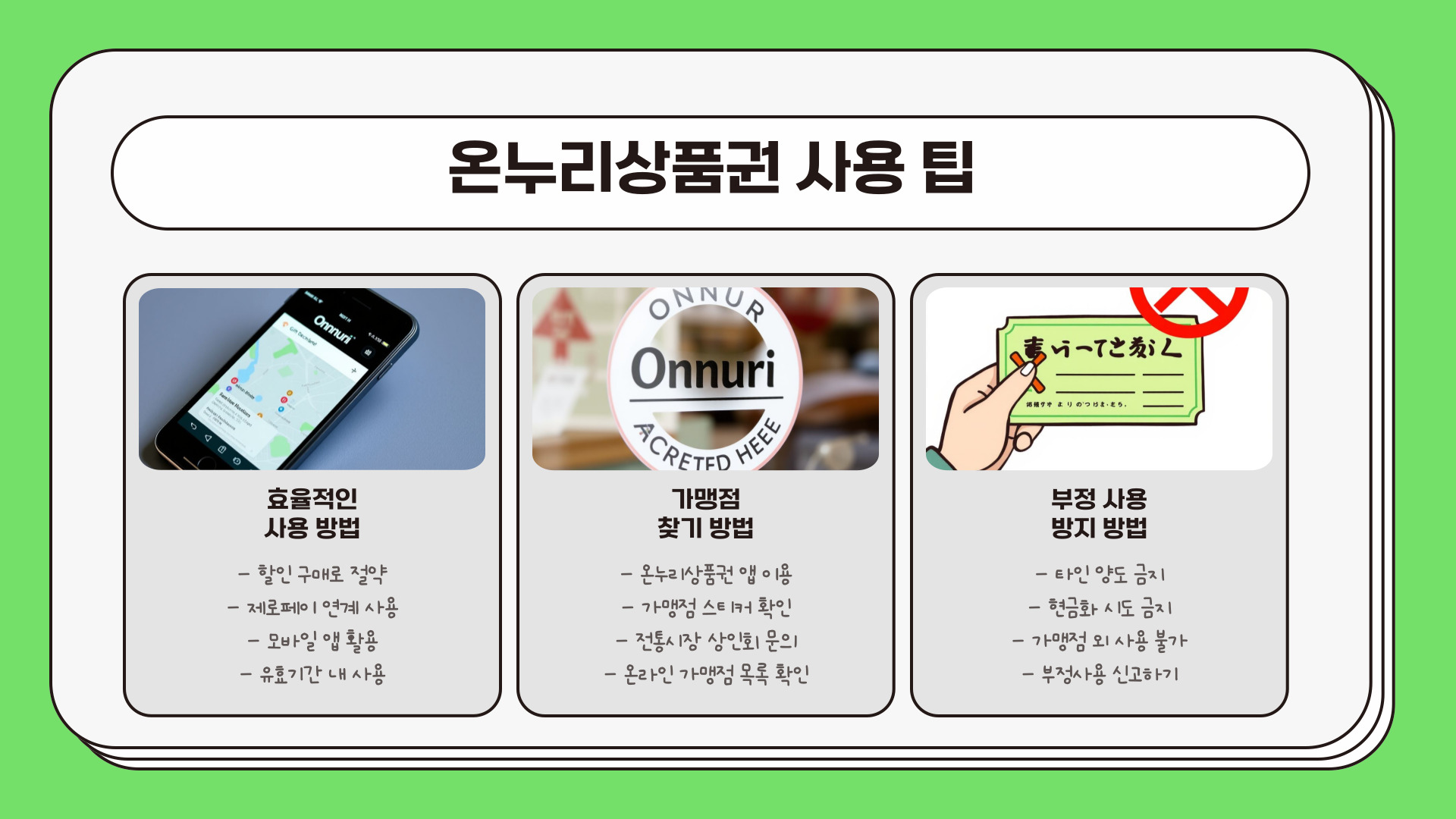 또한, 상점에서는 온누리상품권을 활용한 이벤트나 프로모션을 진행하기도 합니다. 예를 들면, 특정 금액 이상 구매 시 상품권 사용 시 추가 할인을 제공하는 혜택이 있습니다. 이러한 프로모션은 소비자에게 득이 되며, 상점에는 고객 유치를 도와주는 효과가 있습니다.