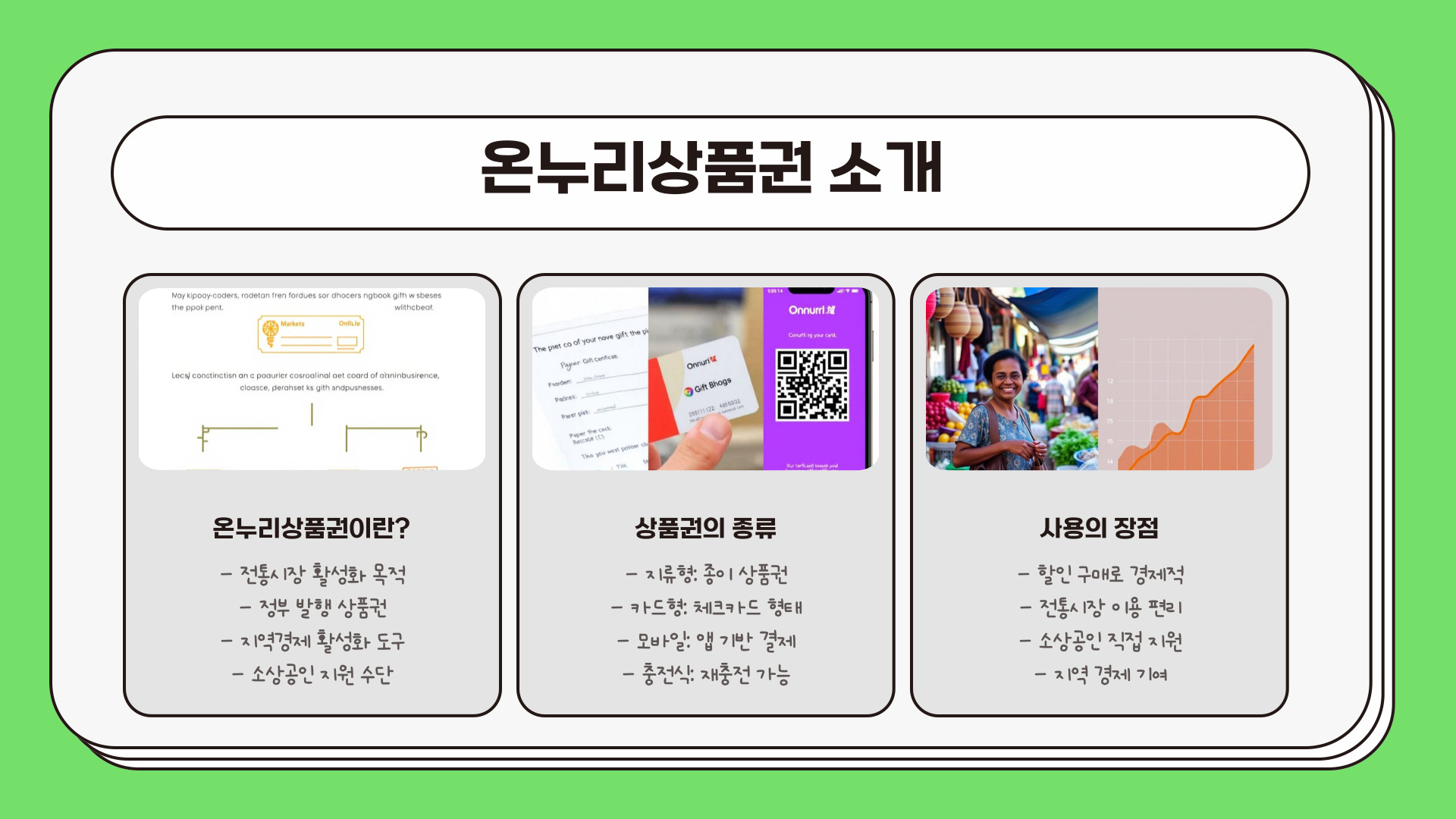 또한, 상점에서는 온누리상품권을 활용한 이벤트나 프로모션을 진행하기도 합니다. 예를 들면, 특정 금액 이상 구매 시 상품권 사용 시 추가 할인을 제공하는 혜택이 있습니다. 이러한 프로모션은 소비자에게 득이 되며, 상점에는 고객 유치를 도와주는 효과가 있습니다.