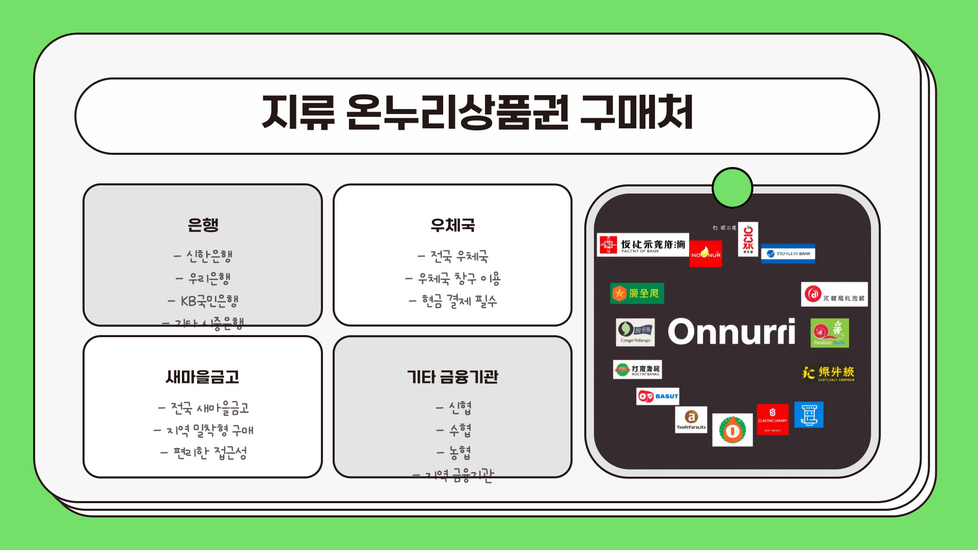 - 온누리상품권은 은행, 우체국, 온라인 쇼핑몰 등에서 구매 가능