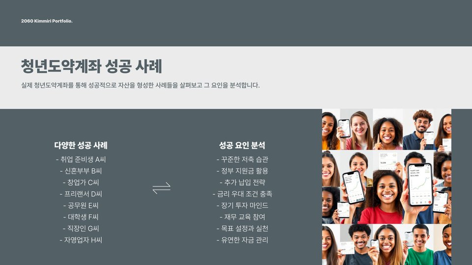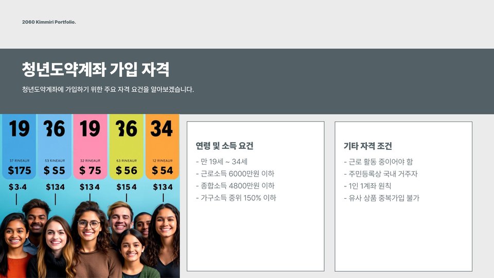 청년도약계좌는 정부가 지원하는 제도로, 청년들이 일정 금액을 저축하면 정부에서 추가로 지원금을 제공하는 방식입니다. 이 계좌는 정해진 기간 동안 저축을 해야 하며, 그에 따른 이자와 지원금이 더해져 자산을 형성하는 데 큰 도움이 됩니다. 청년도약계좌의 가장 큰 장점은 세제 혜택과 정부 지원금으로 인해 실제로 저축하는 금액보다 더 많은 금액을 모을 수 있다는 것입니다.