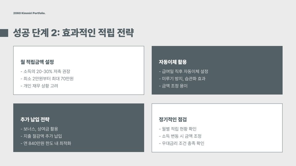 | 2단계 | 철저한 저축 계획 수립 및 지출 관리 |