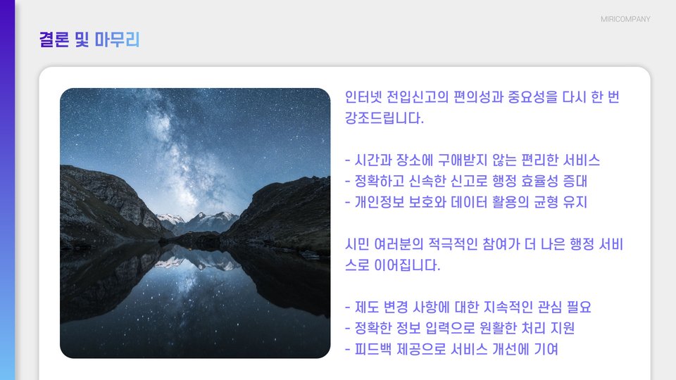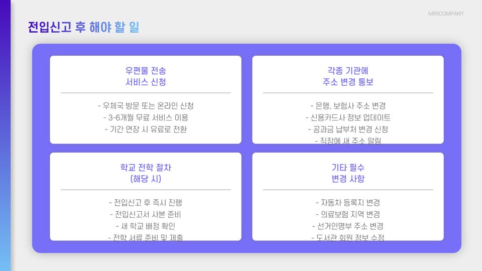 인터넷 전입신고는 간편하고 빠른 방법으로, 새로운 주소로 이사한 후 반드시 진행해야 하는 절차입니다. 위의 가이드를 참고하여 필요한 준비물을 챙기고, 시간을 절약하면서 신고를 마치시길 바랍니다. 전입신고는 귀찮은 절차가 아니라, 새로운 시작을 알리는 중요한 과정입니다.