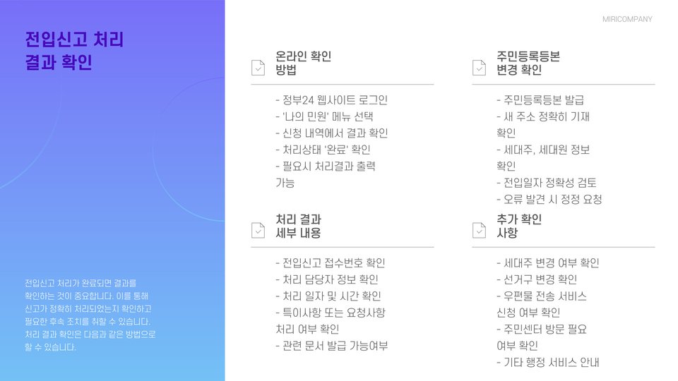 인터넷 전입신고는 이제 더 이상 복잡하지 않습니다. 위의 가이드를 잘 숙지하고 따르면 누구나 손쉽게 전입신고를 완료할 수 있습니다. 시작하기 전에 필요한 서류를 준비하고 아무때나 신청하셔서, 새롭게 시작하는 삶을 더 원활하게 느껴보세요!