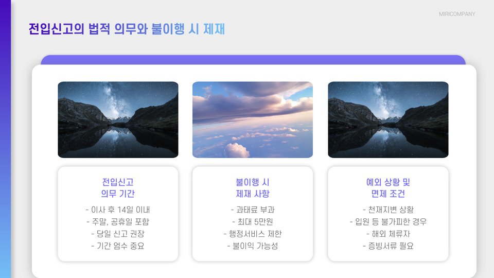 인터넷 전입신고는 간편하고 빠른 방법으로, 새로운 주소로 이사한 후 반드시 진행해야 하는 절차입니다. 위의 가이드를 참고하여 필요한 준비물을 챙기고, 시간을 절약하면서 신고를 마치시길 바랍니다. 전입신고는 귀찮은 절차가 아니라, 새로운 시작을 알리는 중요한 과정입니다.