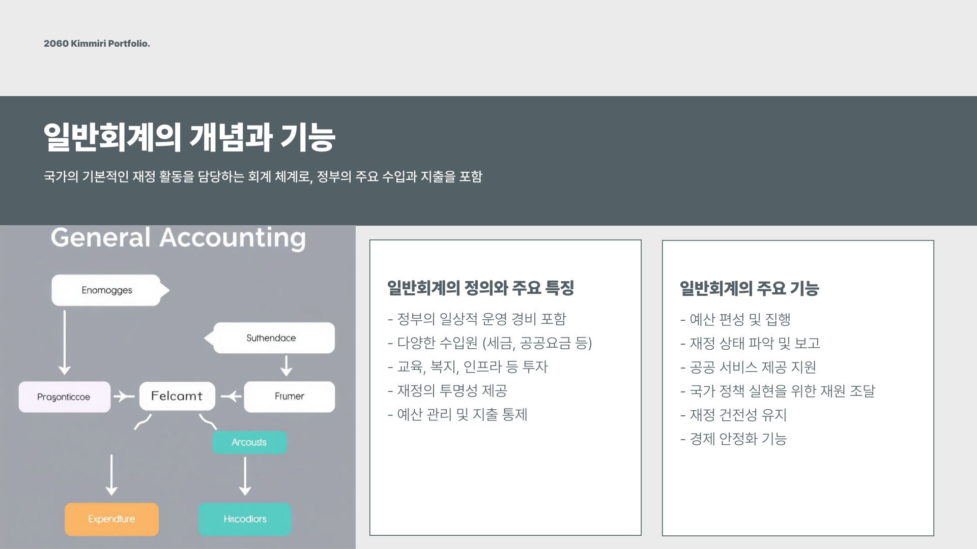 일반회계와 특별회계는 공공재정 관리에 있어서 중요한 두 개념입니다. 일반회계는 국가의 기본적인 재정 활동을 포함하며, 기획, 집행, 기록 및 보고 등 다양한 기능을 수행합니다. 일반회계는 국가의 주요 수입과 지출의 흐름을 기록하므로, 국가 재정의 흐름을 명확하게 이해하는 데 필수적입니다.