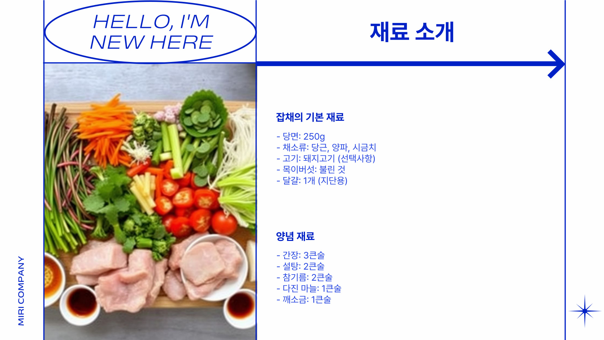 - 잡채의 기본 재료는 당면, 채소, 고기 등 다양한 재료로 준비.