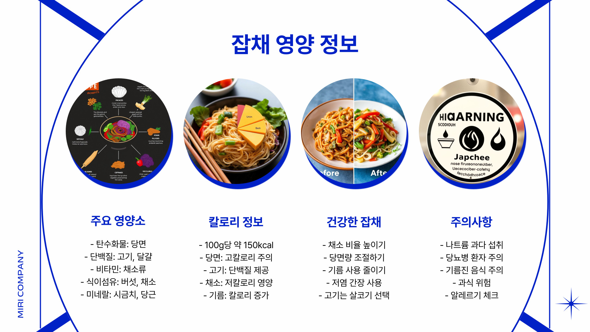잡채는 맛과 영양의 조화를 이루는 훌륭한 요리로, 누구나 쉽게 만들 수 있는 요리입니다. 이번 잡채 황금레시피를 통해 여러분도 빠르고 쉽게 잡채를 만들어 보시길 바랍니다. 식탁에 올리는 것만으로도 특별한 날의 메인 요리로 손색이 없는 잡채, 오늘 저녁 식사에 꼭 추천하고 싶습니다!