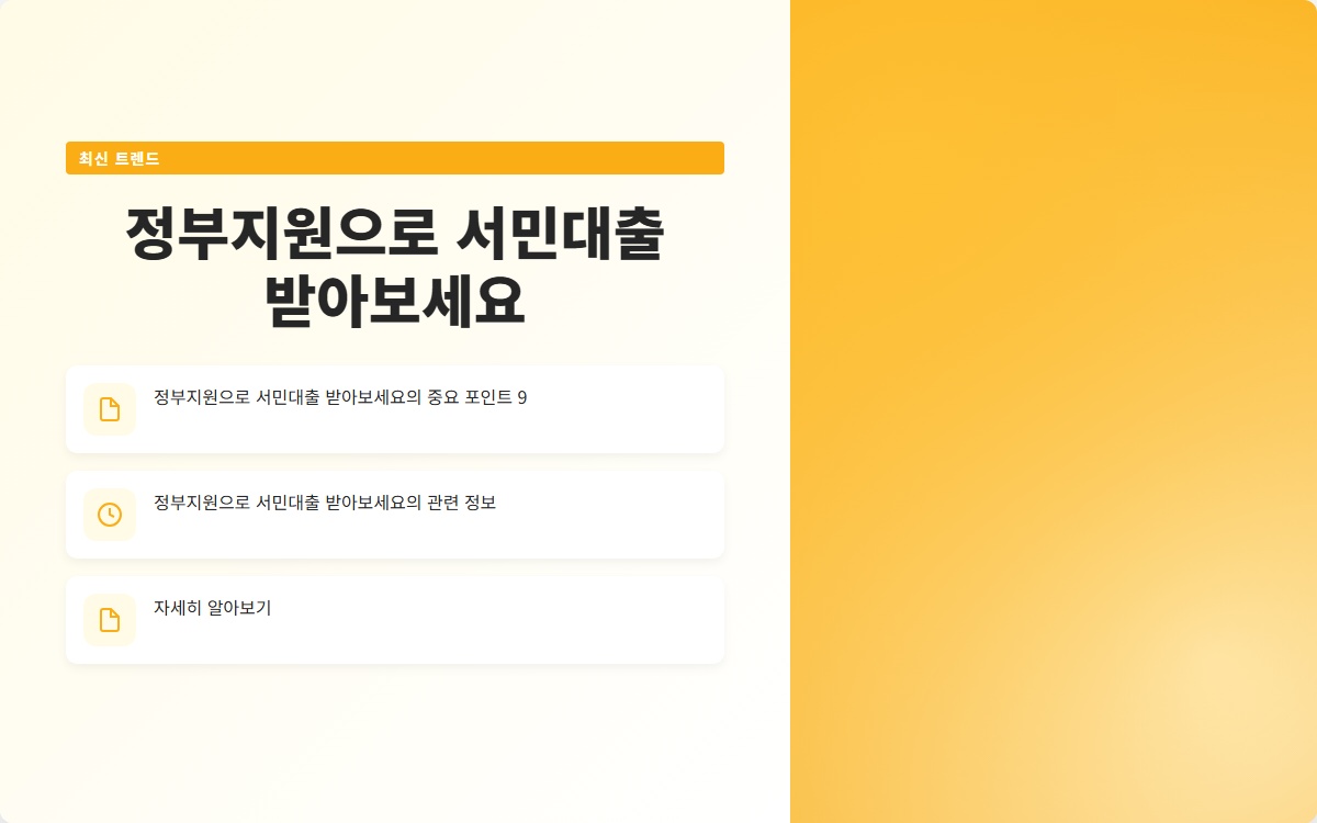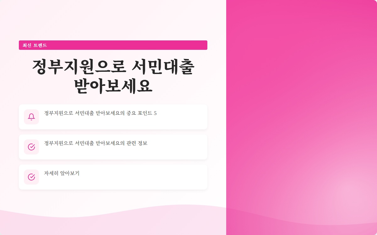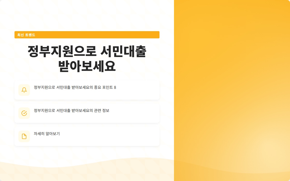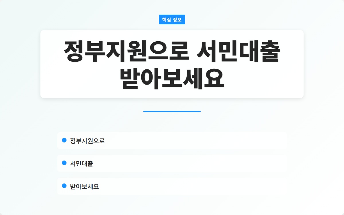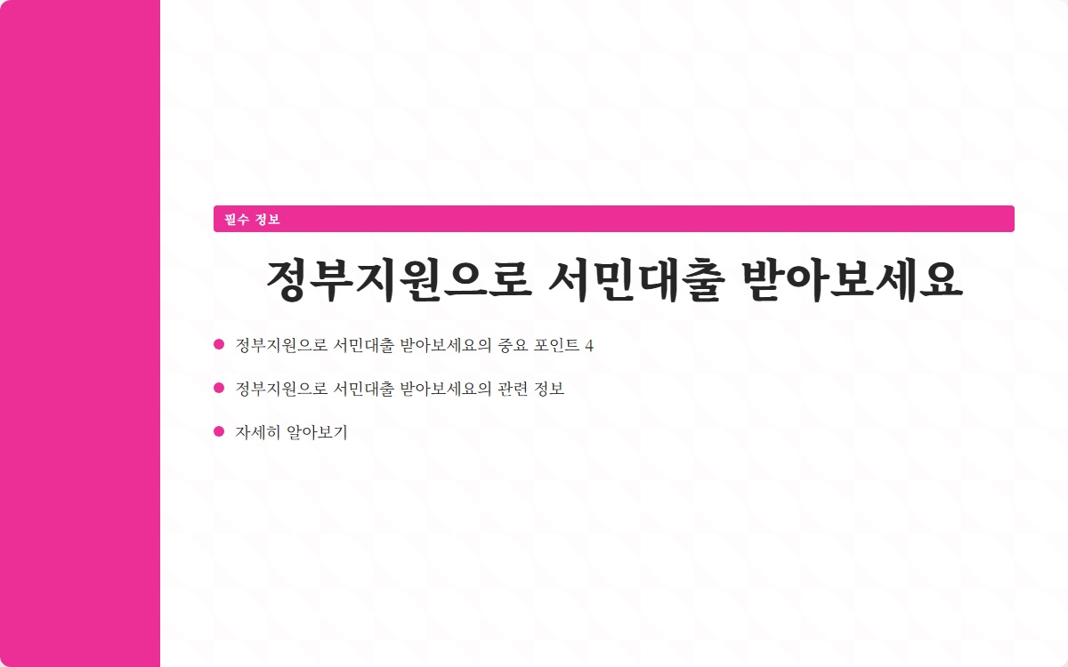 정부지원으로 서민대출을 받아보세요! 재정적 어려움에서 벗어날 수 있는 기회를 놓치지 마세요.