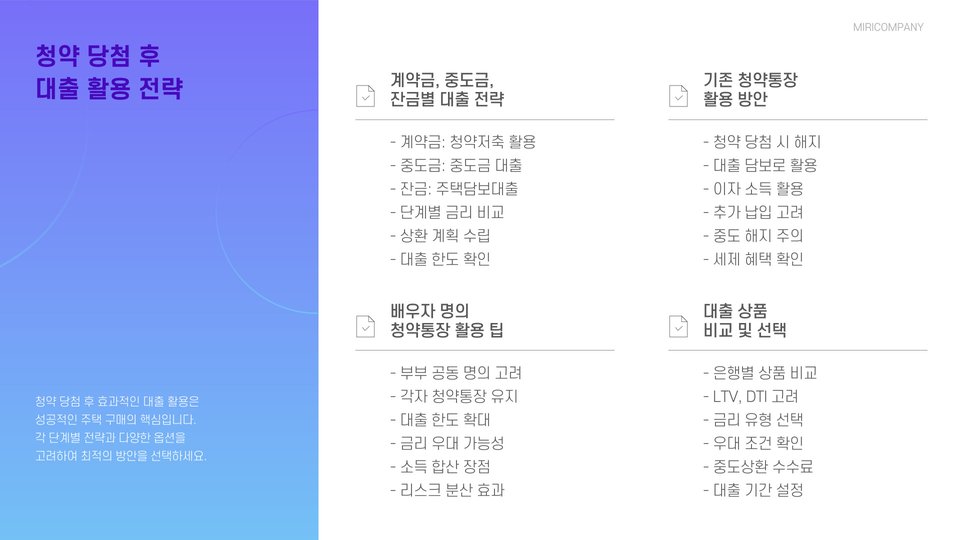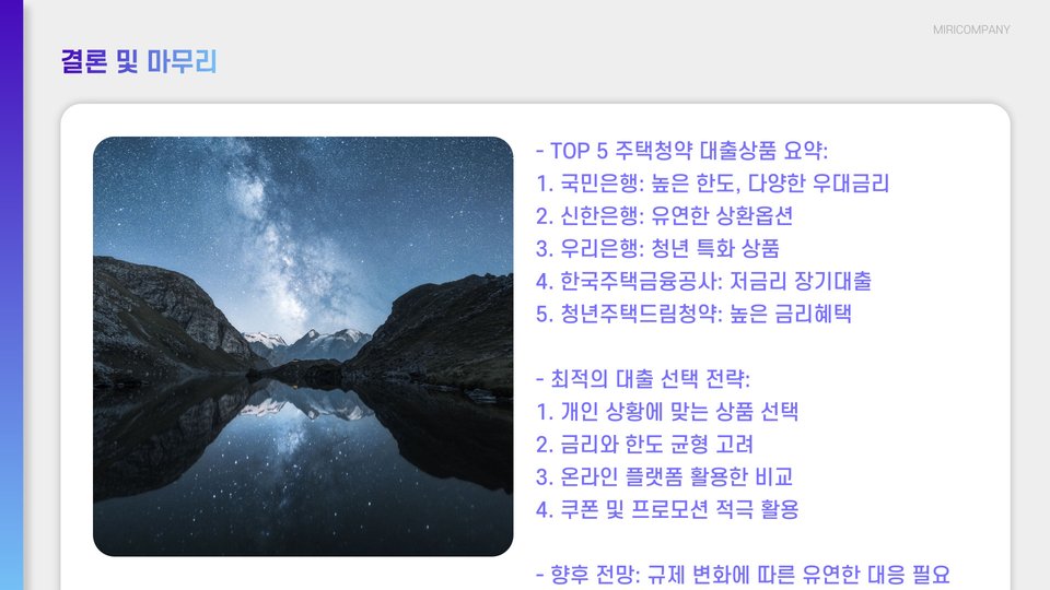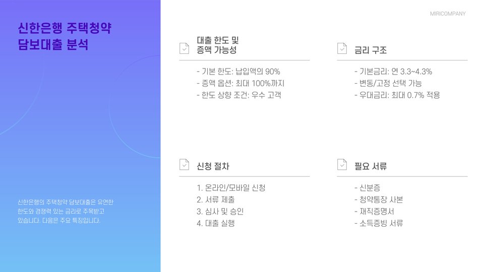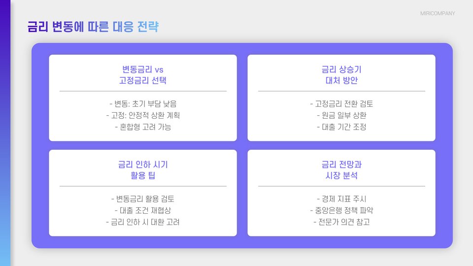 • 다양한 금융기관에서 조건을 비교하여 최적의 선택 필요.