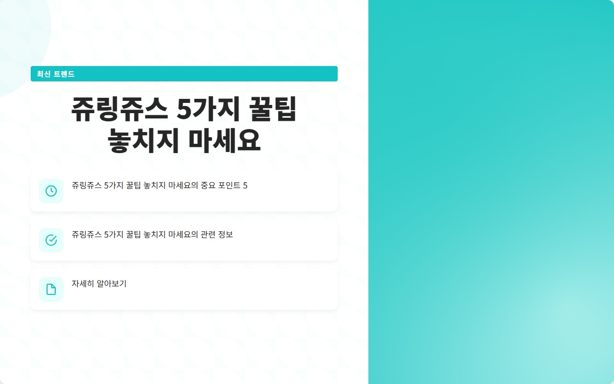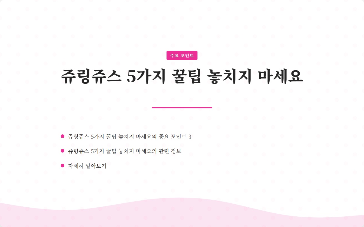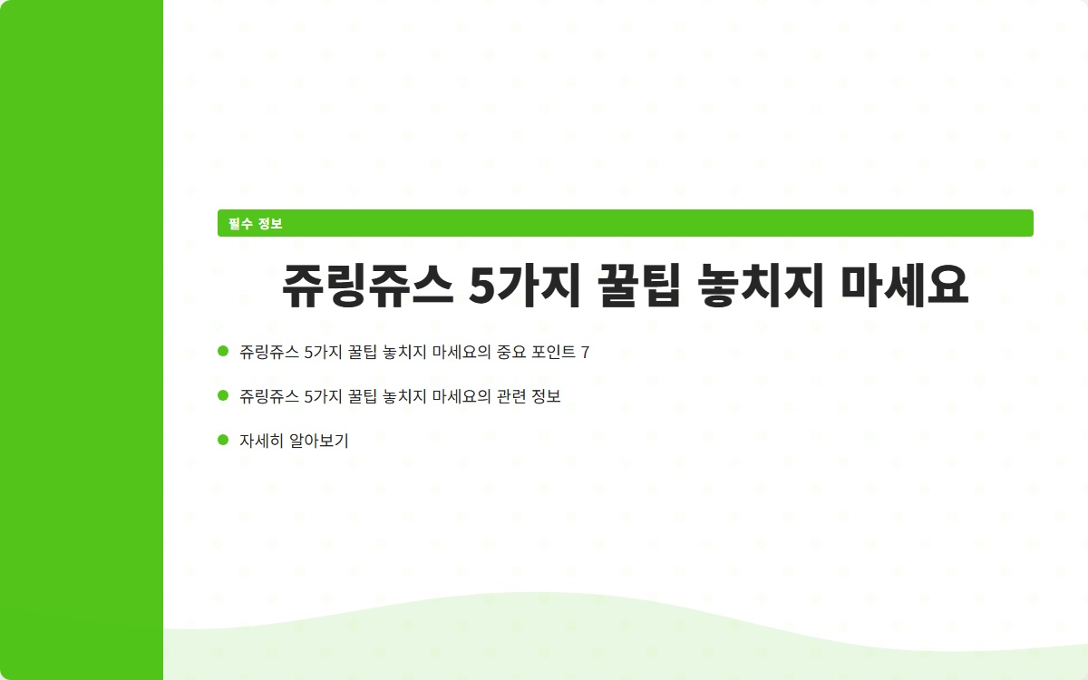 여러분은 쥬링쥬스를 제대로 활용하고 계신가요? 많은 사람들이 쥬링쥬스를 사용하면서도 그 효과를 제대로 느끼지 못하고 있습니다. 이 글을 통해 쥬링쥬스의 5가지 꿀팁을 소개할 예정입니다. 지금 확인해보세요!