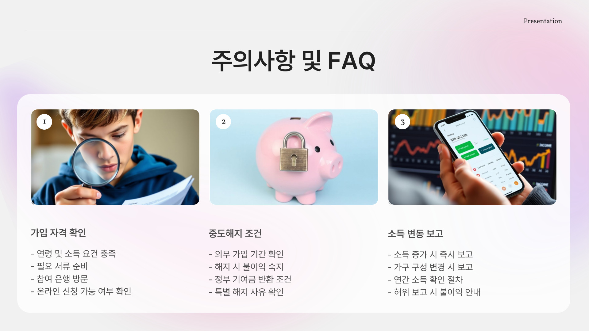 - 재정 상태 점검 후 가입하는 것이 좋습니다.