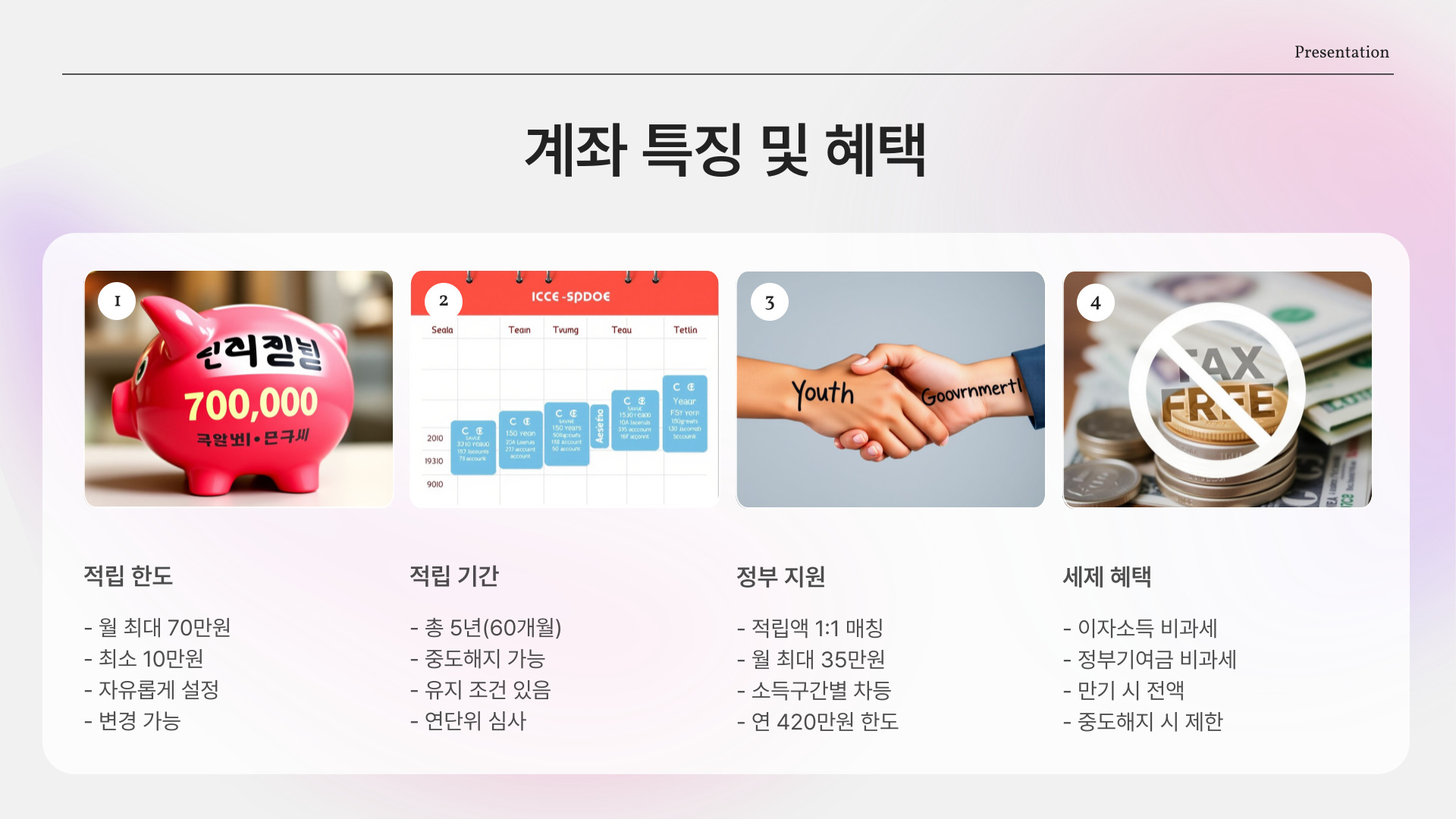- 가입 시 정부의 지원금을 받을 수 있습니다.