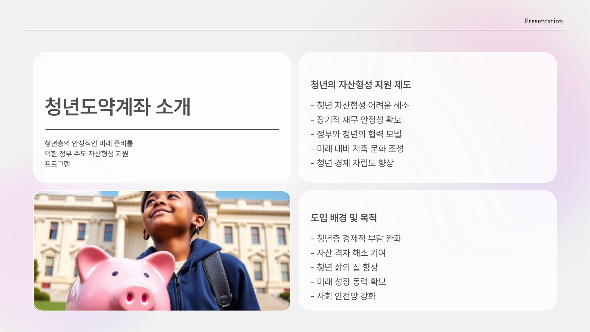 - 청년도약계좌는 자산 축적을 위한 정부 지원 금융 상품입니다.