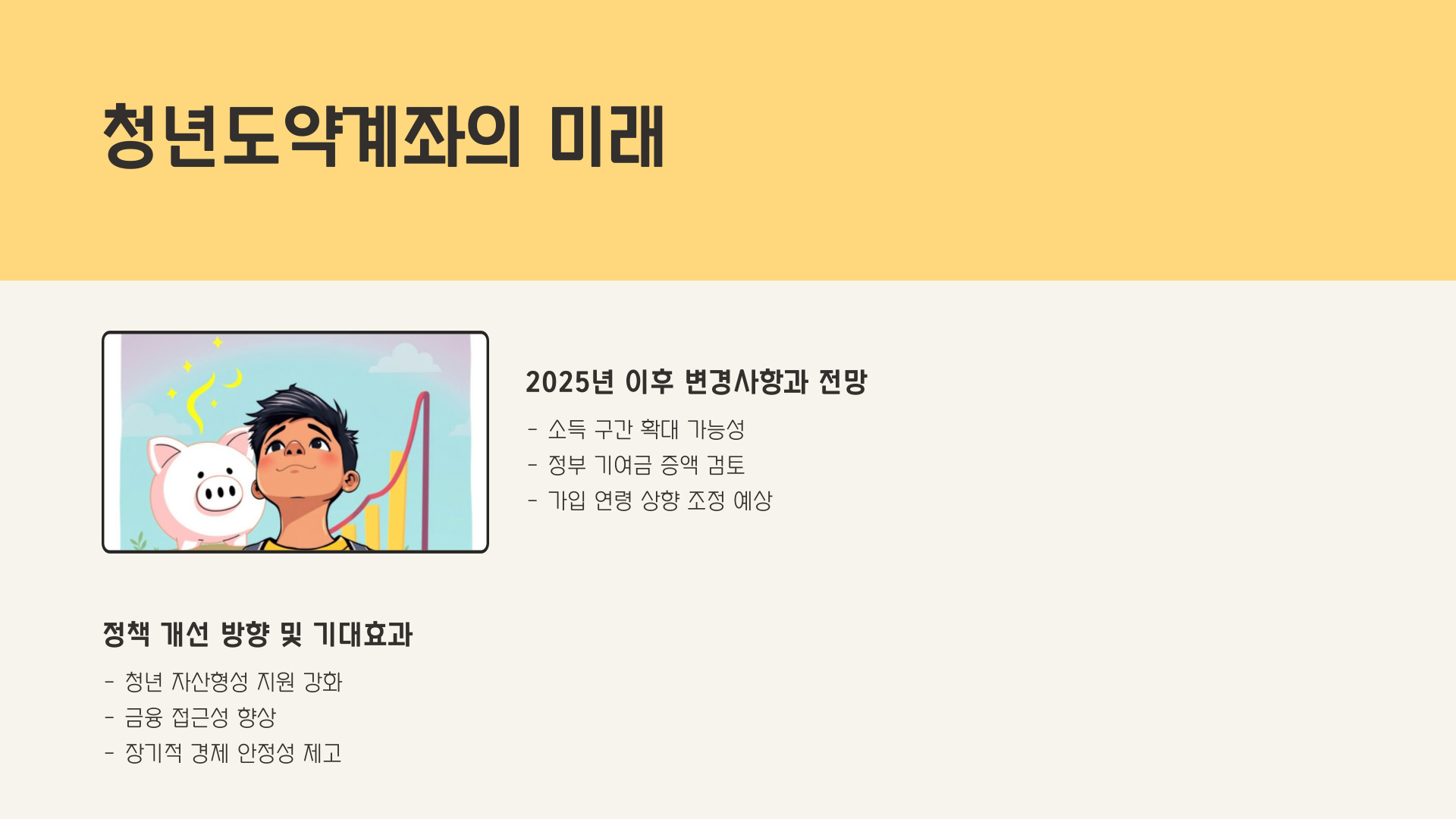 이처럼 청년도약계좌를 활용한 자산 증식은 단순한 꿈이 아닙니다. 올바른 정보와 전략, 그리고 실천이 뒷받침된다면 확실한 결과를 가져올 수 있습니다. 이는 단순한 금융 상품을 넘어, 청년들의 미래를 설계하는 강력한 도구가 될 것입니다.