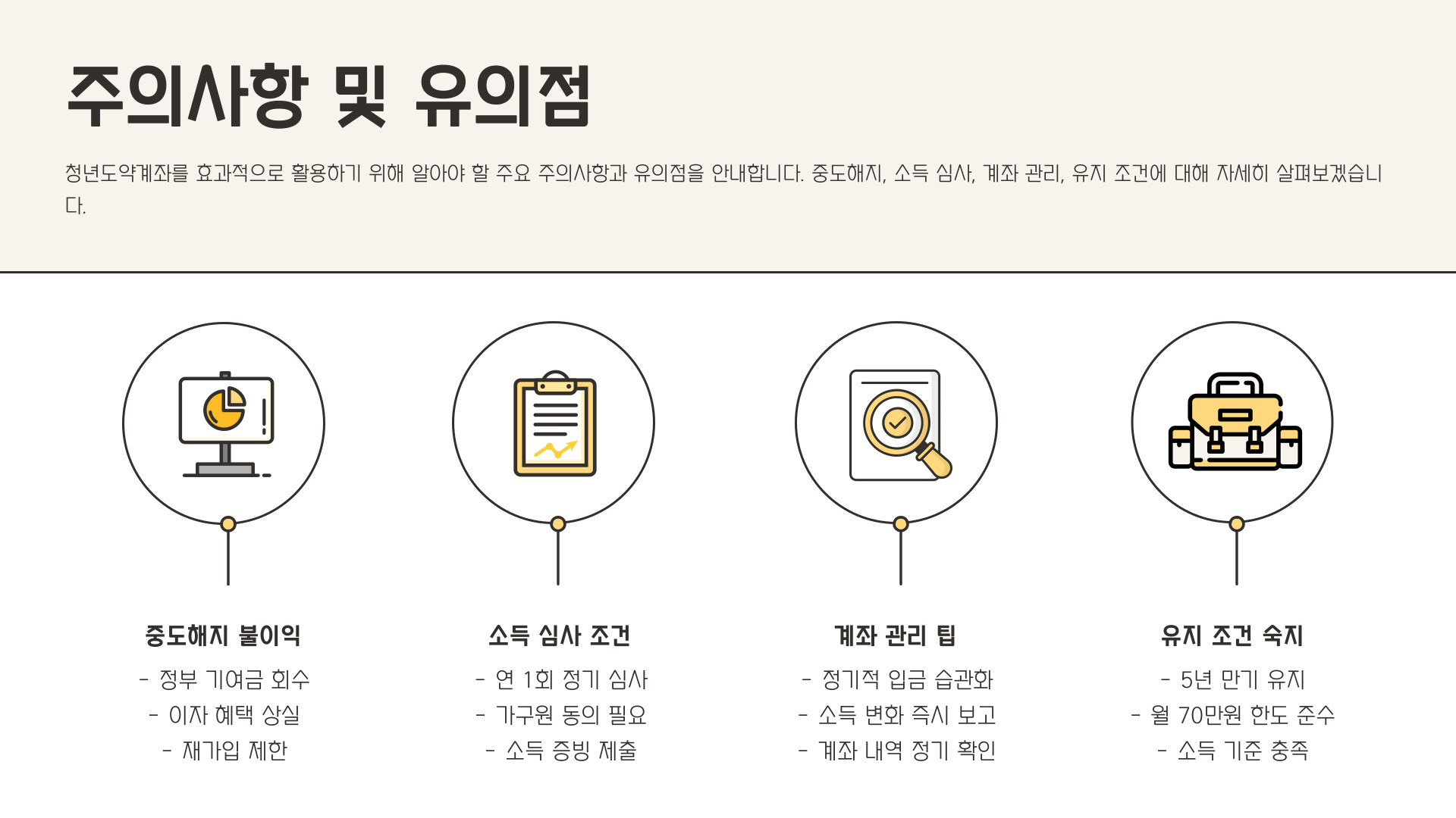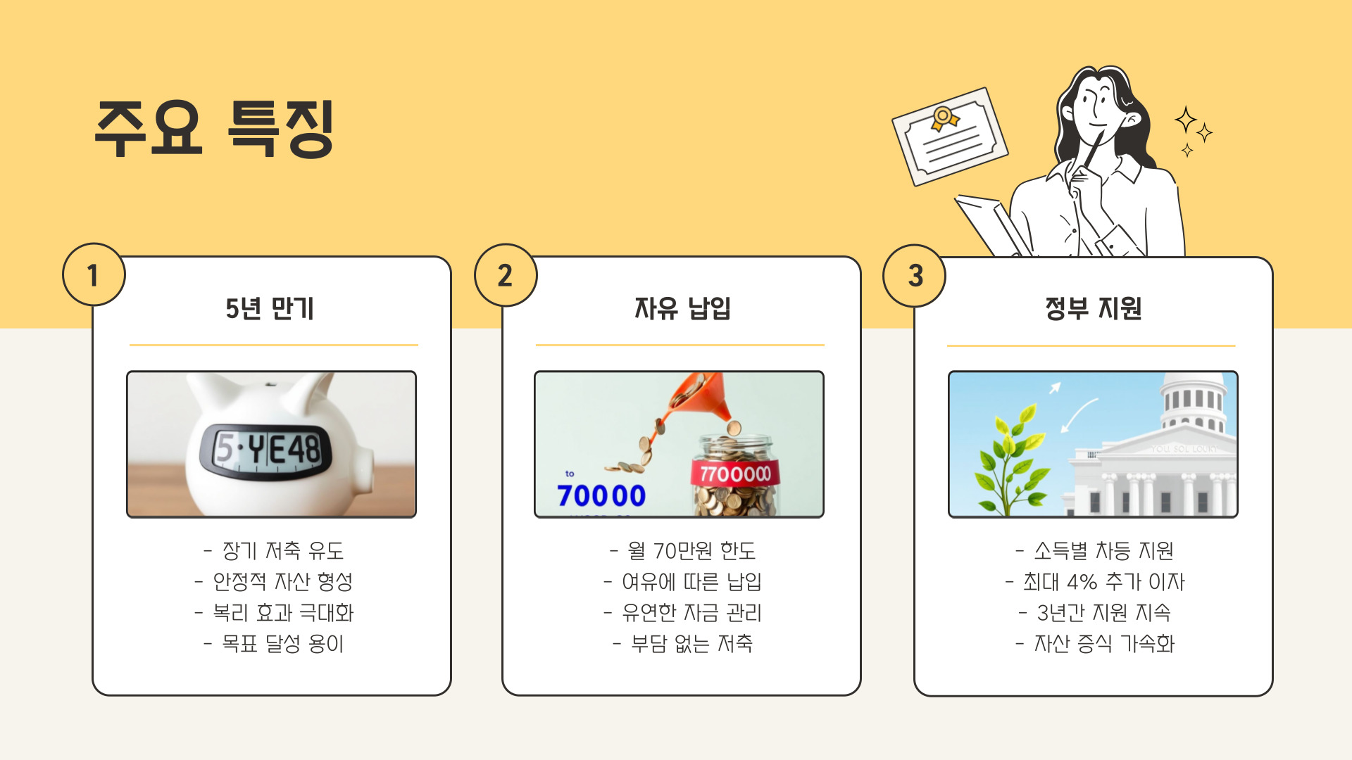 - 정기적인 저축과 중도 인출 금지가 중요합니다.