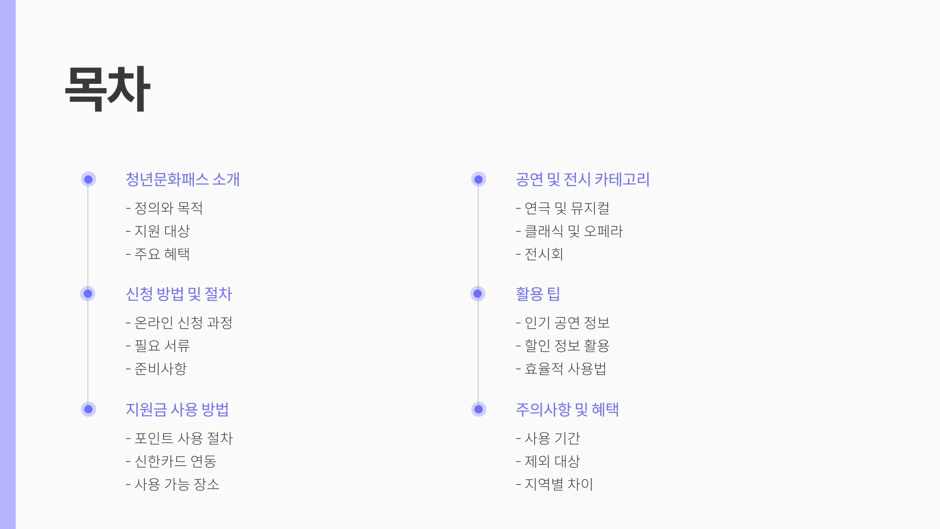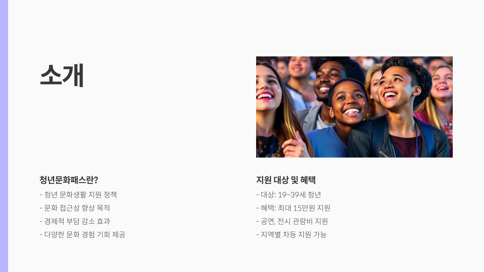 | 청년문화패스 정의 | 청년들에게 문화 혜택을 제공하는 프로그램 |