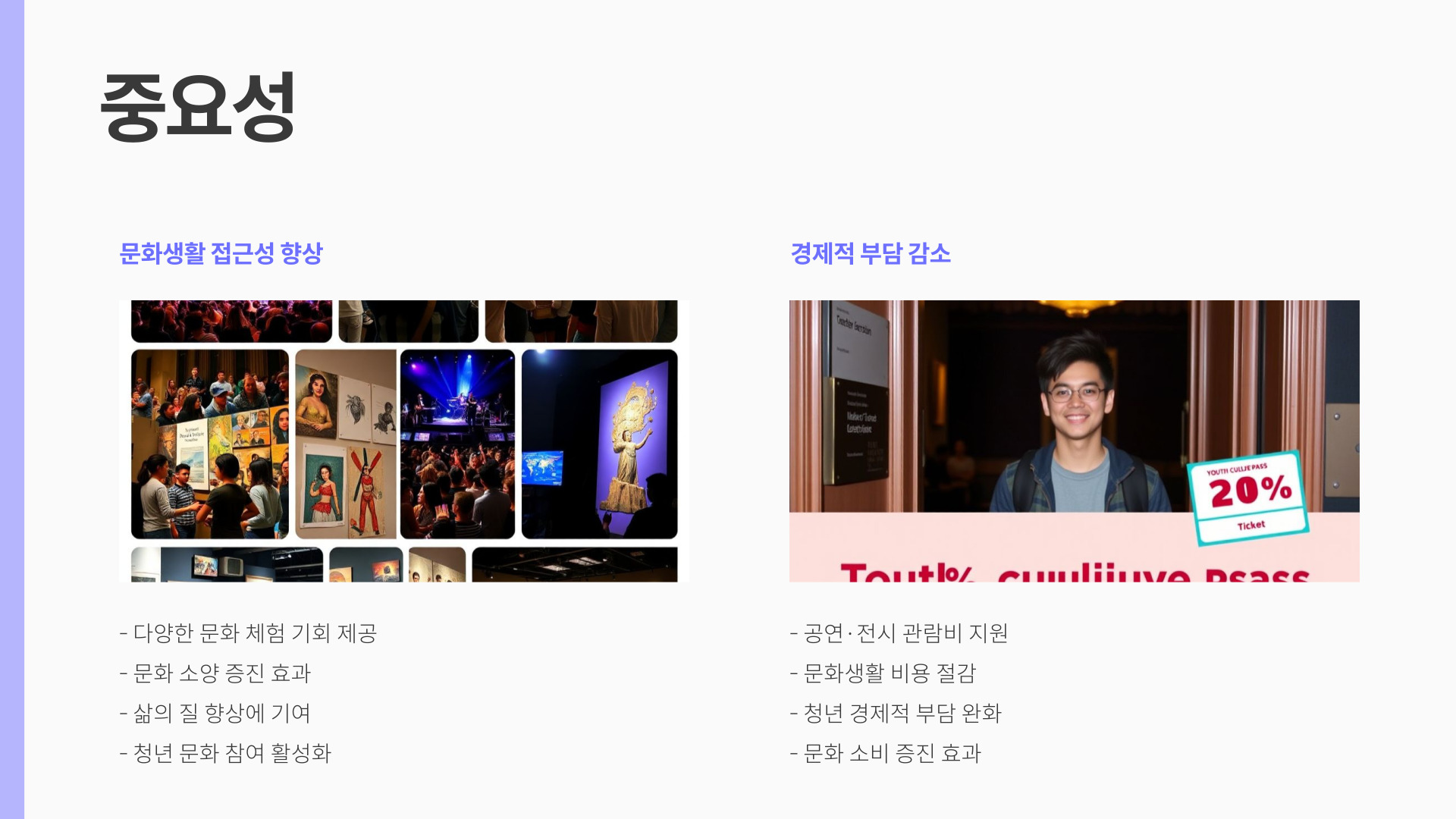 이 패스는 특히 청년들에게 중요한 역할을 합니다. 우리 사회는 점점 더 다양한 문화 콘텐츠가 생겨나고 있는데, 이러한 콘텐츠를 즐기고 경험할 수 있는 기회는 제한적일 수 있습니다. 따라서 청년문화패스와 같은 지원이 있으면 경제적 이유로 문화활동을 포기할 필요가 없죠. 지금부터는 이 패스를 제대로 활용하는 방법에 대해 알아보겠습니다.