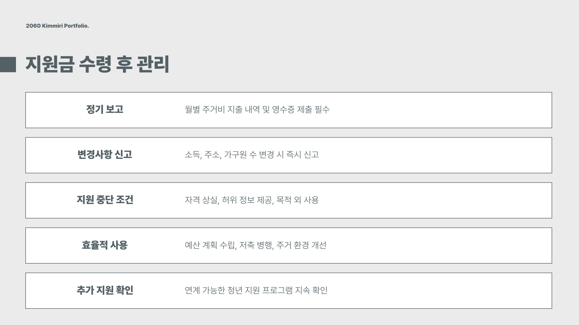 - 주거 형태 및 소득 기준 확인 필수