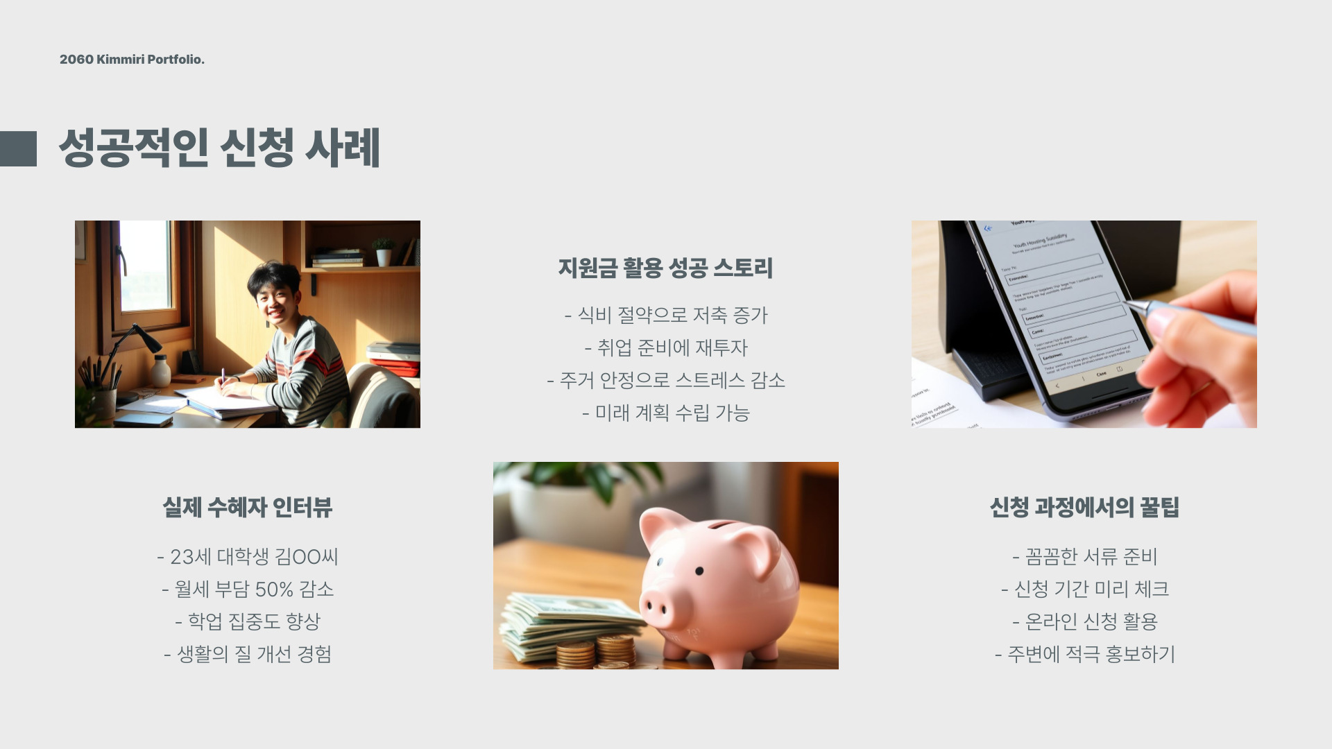 다양한 연구 결과에 따르면, 청년월세 지원금을 받은 청년들은 더 높은 취업률과 안정적인 직장에 다니는 경향이 있습니다. 이는 결국 사회 전체의 경제 활성화로 이어질 수 있습니다.