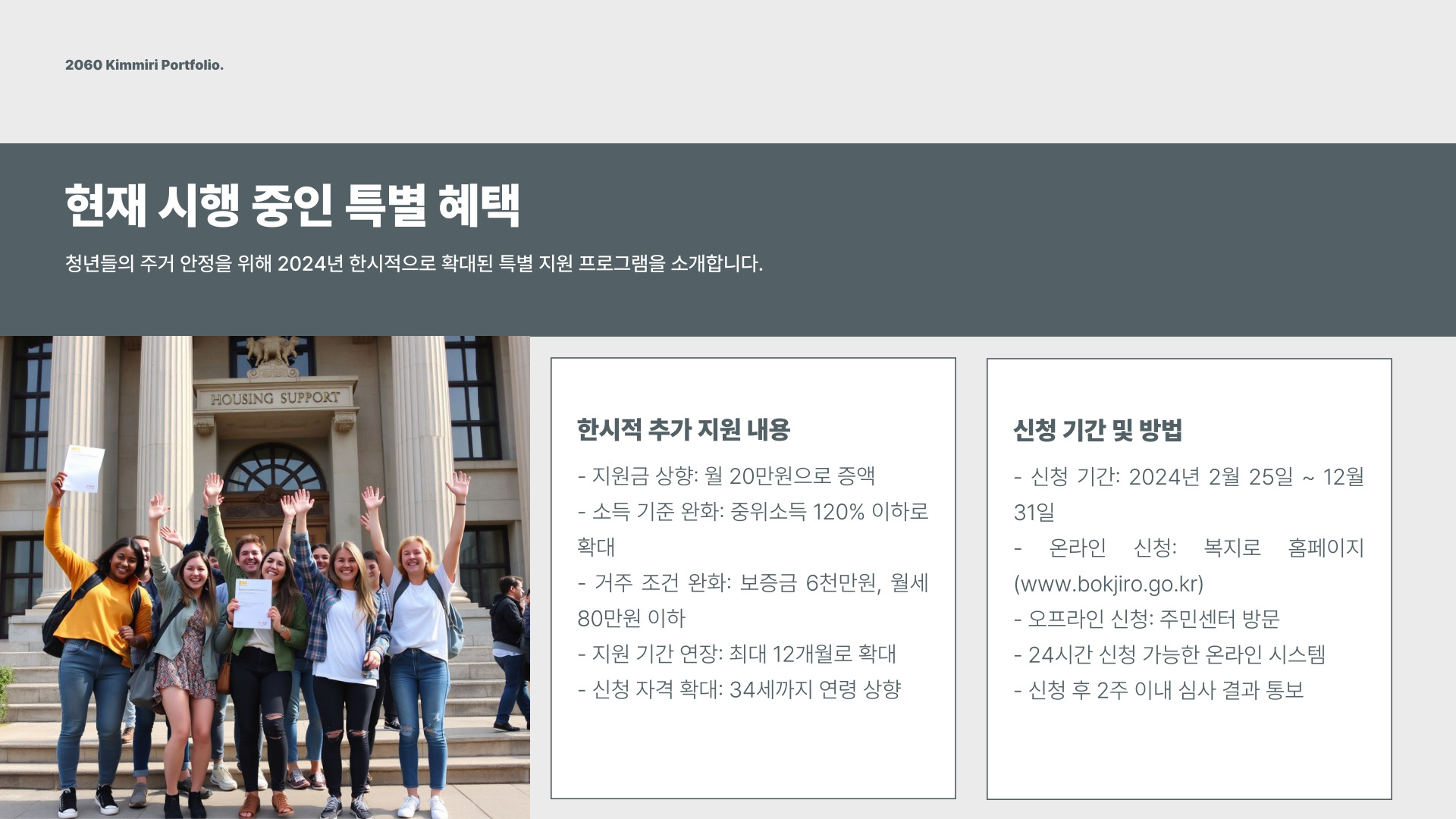 지원금 신청은 온라인으로 가능하며, 신청 후에는 1~2개월 이내에 지원금이 지급됩니다. 이를 통해 청년들은 경제적인 부담을 덜고, 보다 안정된 주거 환경을 누릴 수 있습니다.