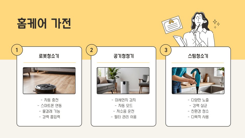 | 스마트 홈 기기 | 집안의 편리함을 더해주는 기기 |