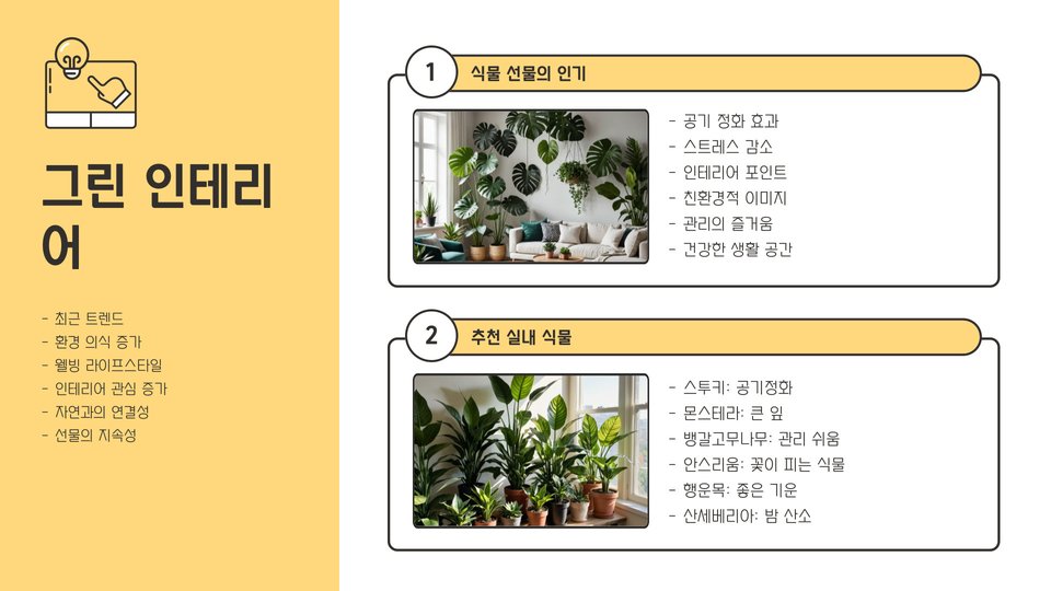 실내 식물을 선물로 주는 것도 요즘 트렌드 중 하나입니다. 식물은 공기 정화뿐만 아니라, 편안한 분위기를 제공해 줍니다. 특히 관리가 쉬운 다육식물이나 피토니아 같은 식물들은 초보자도 손쉽게 기를 수 있어 더욱 매력적입니다.
