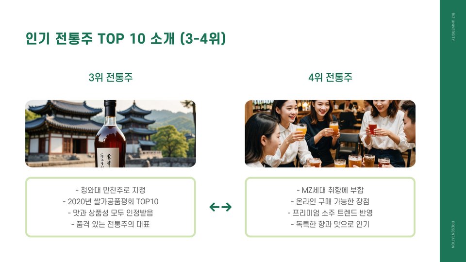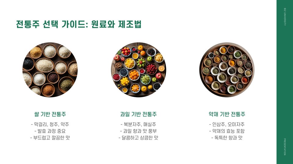 앞으로의 전통주 시장에서 어떤 제품이 인기 있을지 탐색해보겠습니다. 2025년에는 생산 방식과 지역 특성, 그리고 소셜 미디어와 같은 현대적인 요소가 결합된 전통주가 각광받을 것입니다. 이에 따라 다음과 같은 리스트를 작성했습니다.