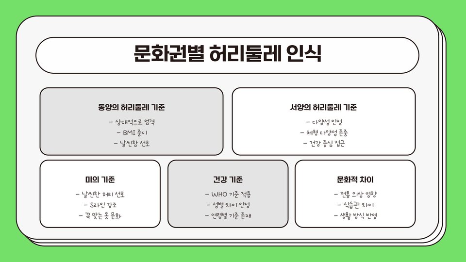 세계보건기구(WHO)에서는 남성의 허리둘레가 90cm, 여성의 경우 80cm를 초과하면 건강 위험이 증가한다고 경고합니다. 이는 체중과 함께 허리둘레를 고려해야 건강을 보다 정확하게 평가할 수 있음을 보여줍니다.