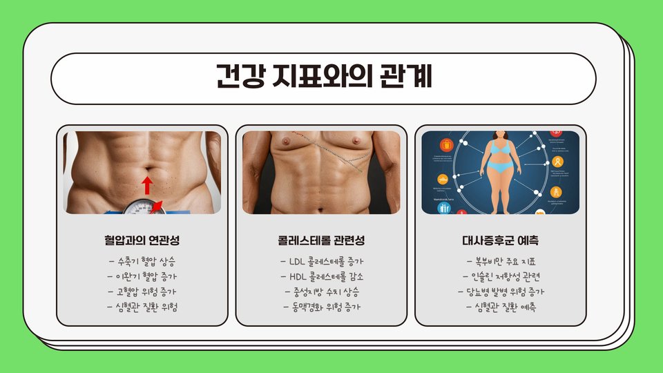 허리둘레와 건강 사이에는 밀접한 관계가 있습니다. 높은 허리둘레는 체내 지방, 특히 내장 지방의 축적을 의미하며, 이는 심혈관 질환, 당뇨병, 고혈압 등 다양한 건강 문제를 유발할 수 있습니다. 따라서 허리둘레를 관리하는 것은 건강을 지키는 중요한 방법입니다.