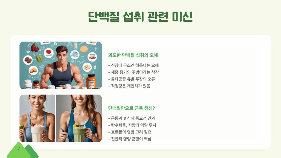 - 과도한 단백질 섭취는 신장에 부담을 줄 수 있으므로 적절한 양을 섭취해야 한다.