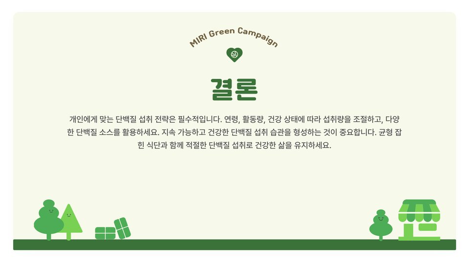 결론적으로, 자신의 생활 습관과 신체 조건에 맞는 적절한 1일 단백질 섭취량을 이해하고 이를 지키는 것이 건강한 삶을 위한 기초가 됩니다. 적절한 단백질 섭취를 통해 건강을 지키고 삶의 질을 높이는 데 도움이 되길 바랍니다. 감사합니다!