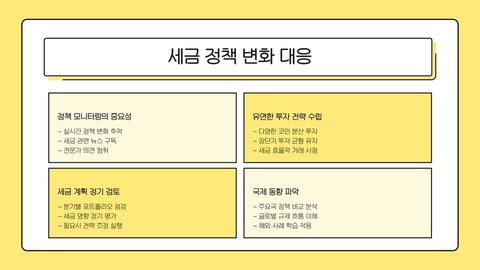 - 각국의 세법을 이해하고 그에 맞는 전략을 수립하는 것이 중요하다.