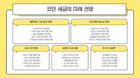 코인 세금에 대한 이해는 투자자에게 필수적입니다. 올바른 정보와 전략을 바탕으로 효과적으로 세금을 관리하면 투자 성과를 극대화할 수 있습니다. 세금 문제를 가볍게 여기지 말고, 신중한 접근이 필요합니다.