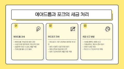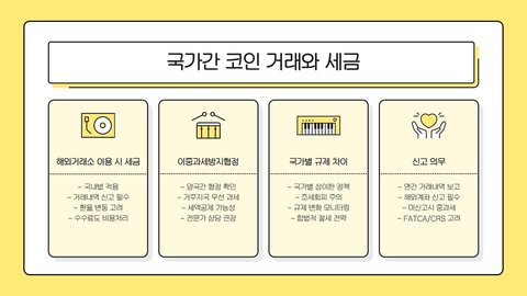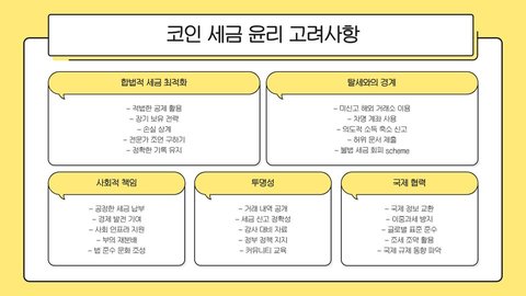- 코인 세금은 국가마다 다르며, 실제로 발생한 이익에 대해 과세된다.