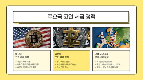 - 코인 세금은 국가마다 다르며, 실제로 발생한 이익에 대해 과세된다.