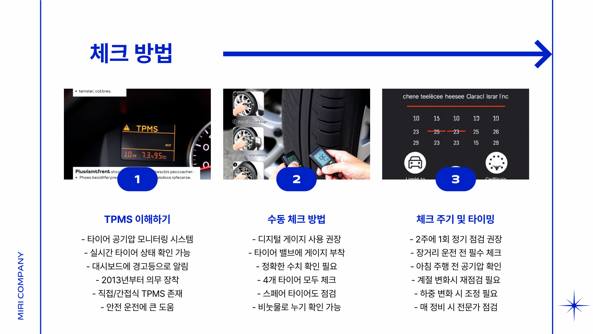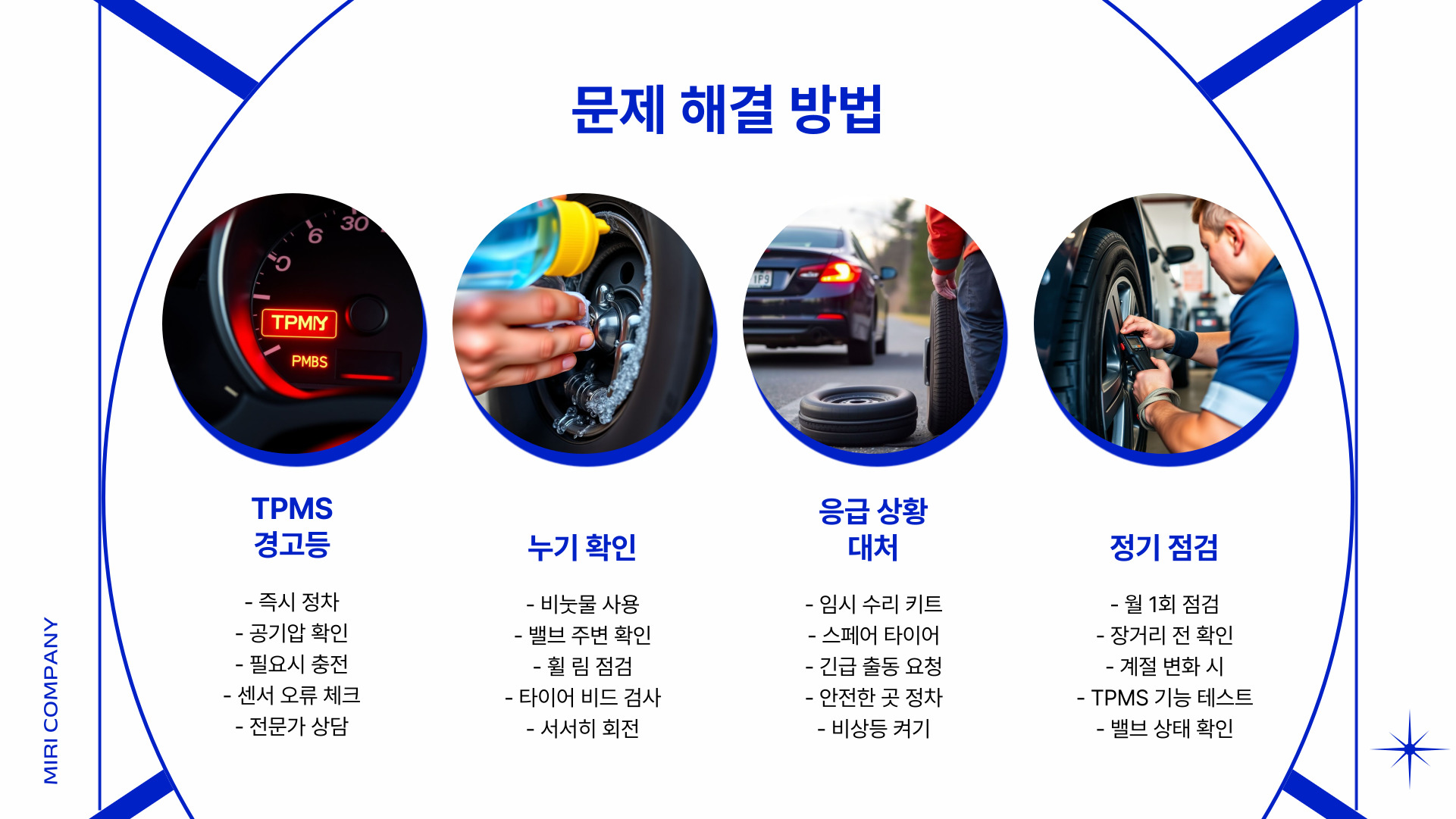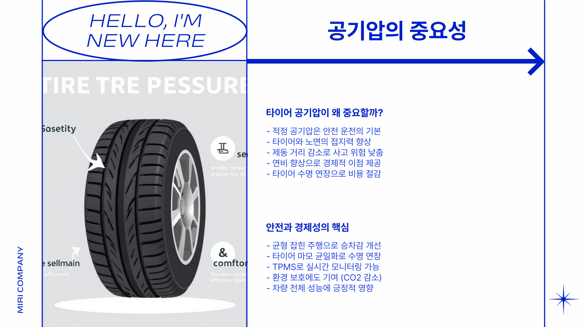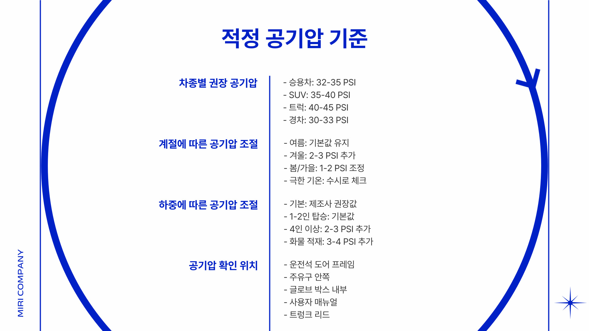 - 타이어 공기압은 차량 안전에 필수적입니다.