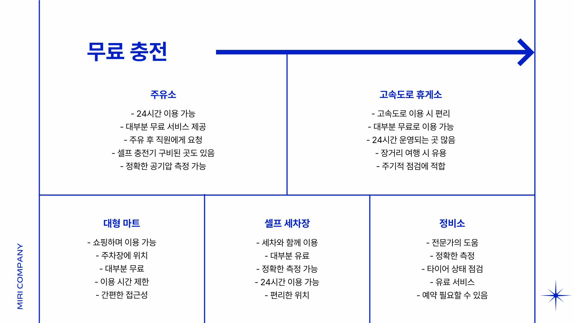 타이어 공기압을 넣는 장소는 매우 중요합니다. 편의점, 주유소, 자동차 정비소 등 다양한 장소에서 공기압을 넣을 수 있습니다. 하지만 장소에 따라 서비스 퀄리티와 접근성이 다를 수 있으니, 미리 알아두는 것이 좋습니다.