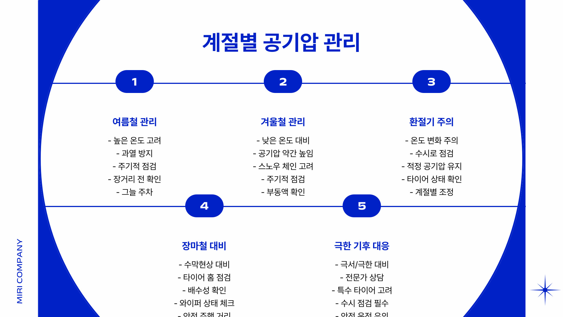 - 온도 변화에 따라 공기압이 변할 수 있으므로, 계절에 맞춰 공기압을 조정하세요.