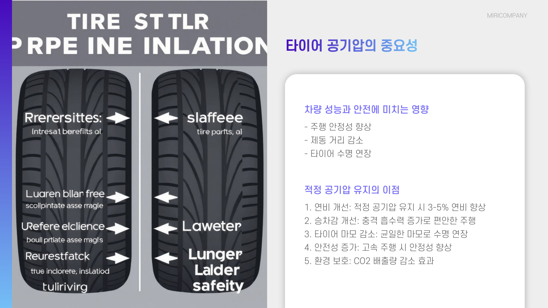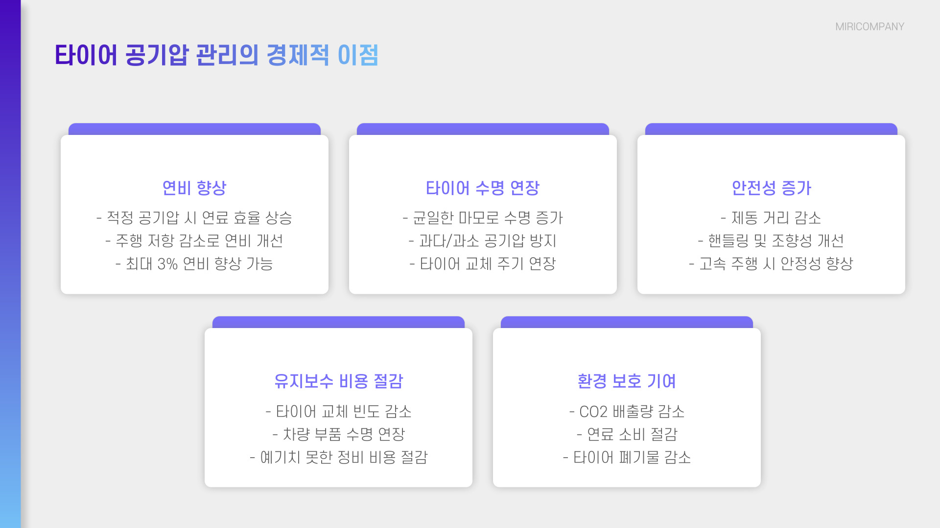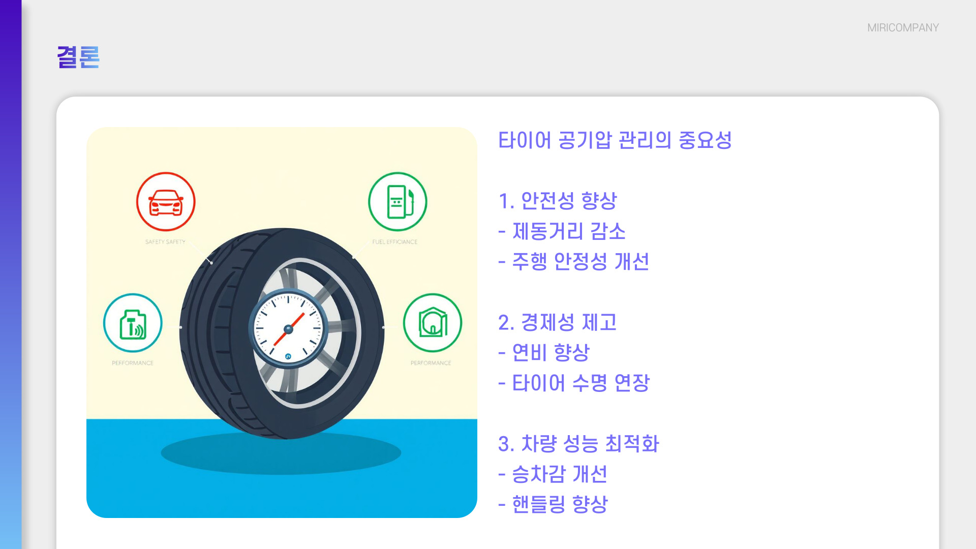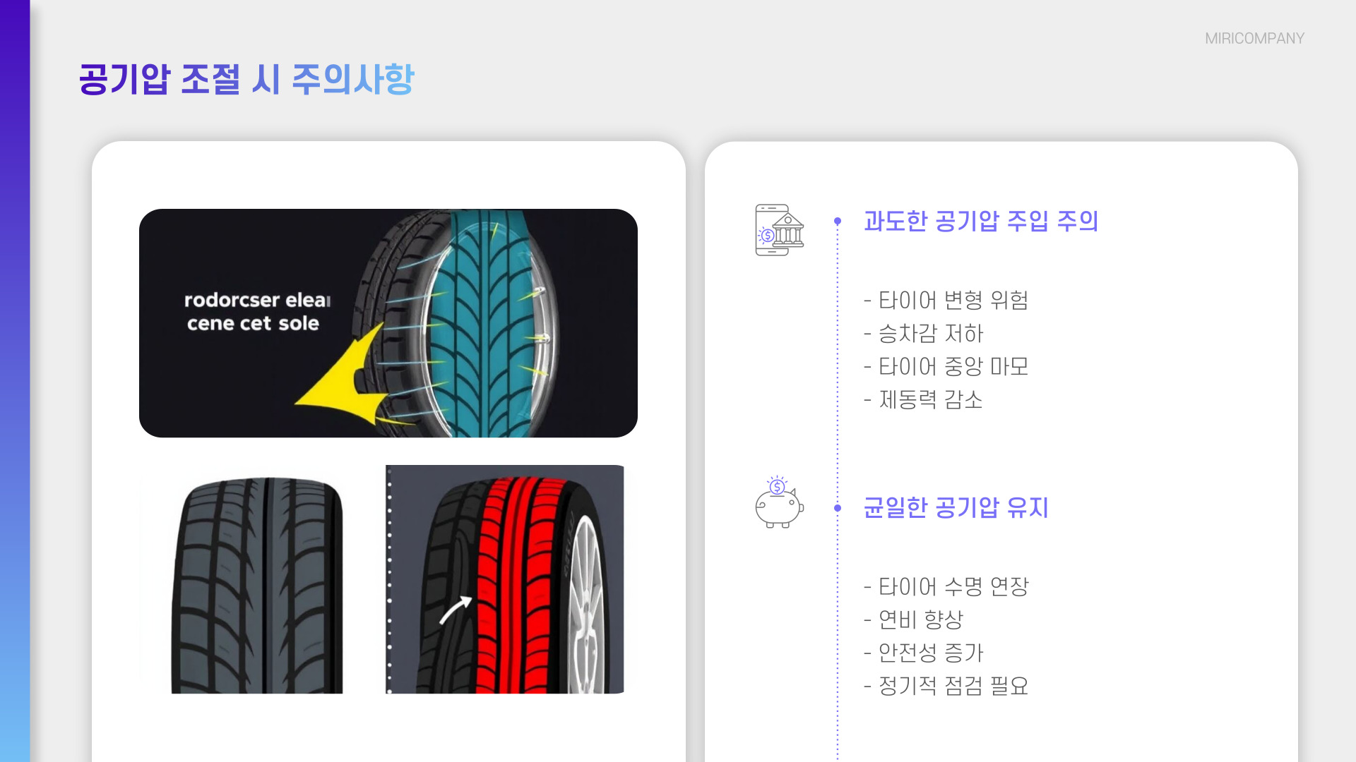 적정 공기압 유지 타이어 마모 감소 및 연비 향상