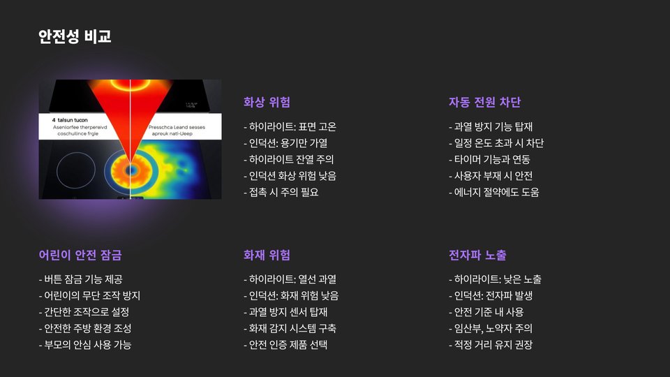 | 안전성 | 상대적으로 높음 | 상판 온도 주의 필요 |