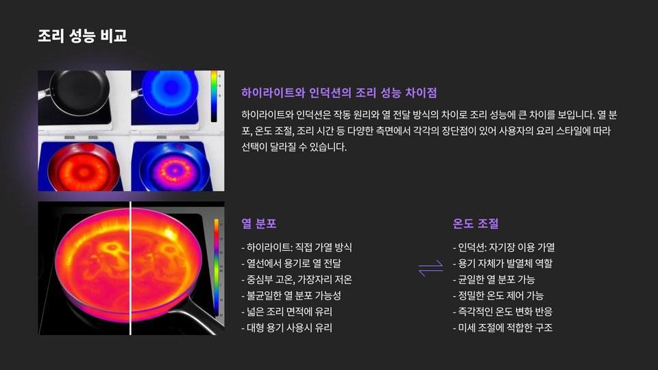 - 열 전도 방식의 차이로 인해 조리 속도가 빠릅니다.
