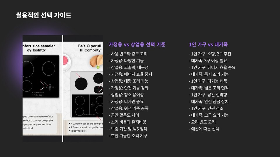 이러한 요소들을 고려하여 인덕션과 하이라이트 중 여러분의 생활에 가장 적합한 선택을 하세요. 많은 요리를 즐기고 더욱 편리한 주방 환경을 만나보시기 바랍니다.