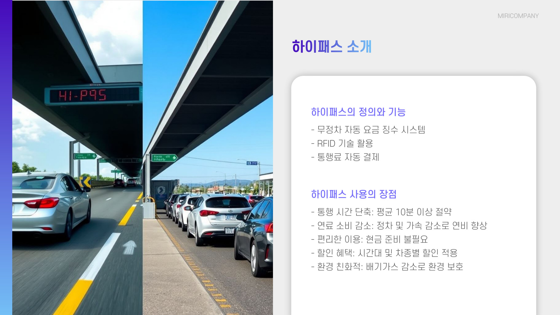 - 하이패스는 시간을 절약하는 효율적인 시스템