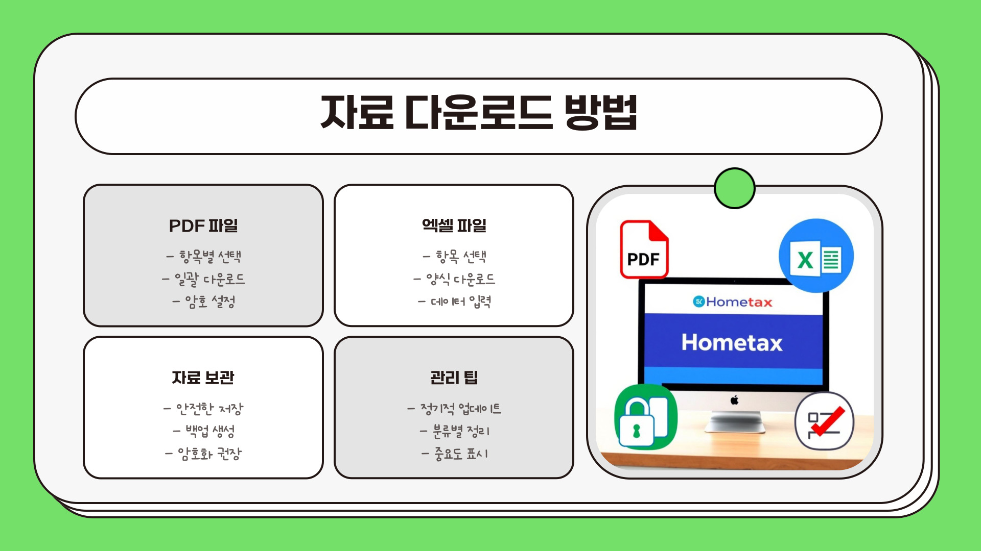 - 홈택스는 전자 세금 신고 시스템입니다.
